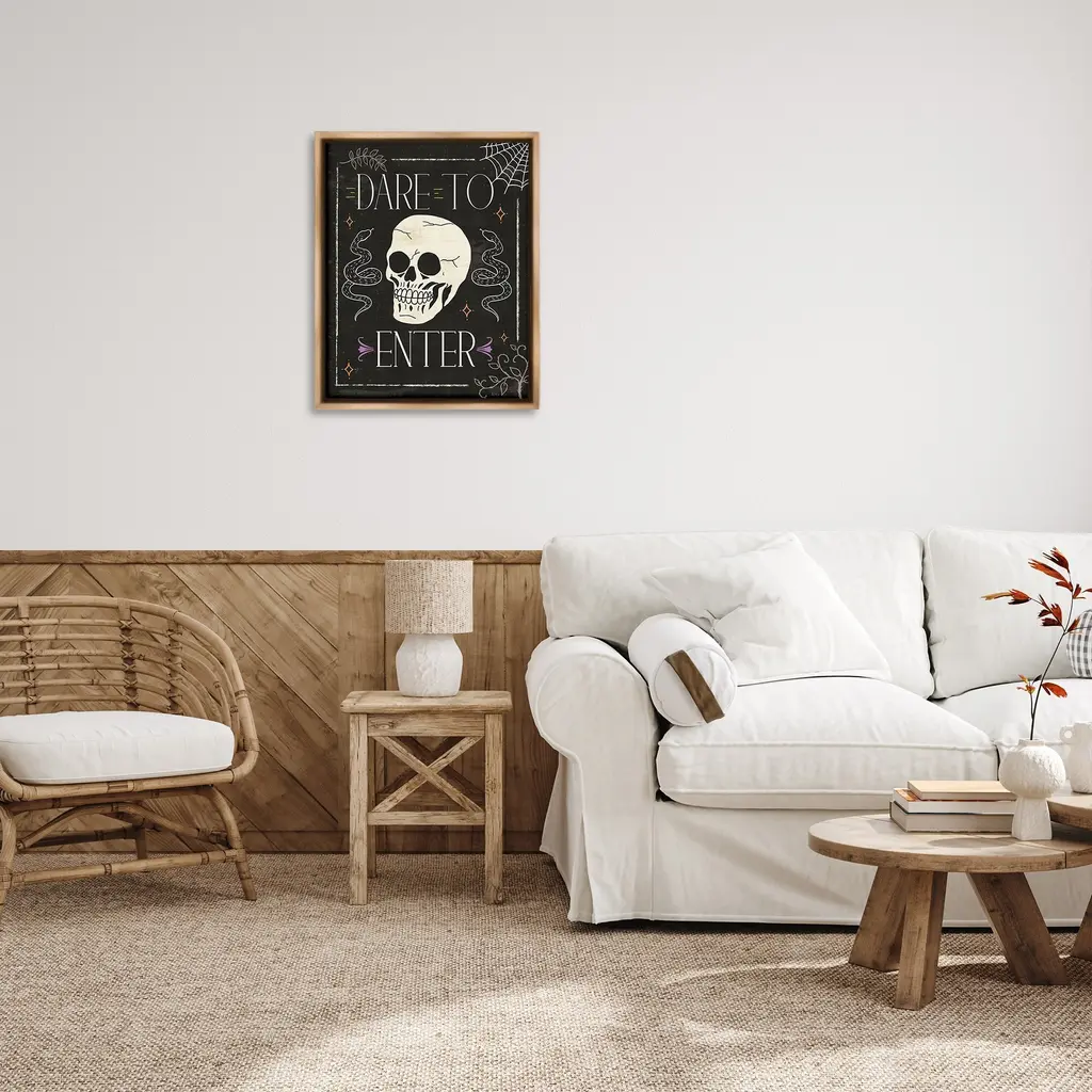 Elevate your home or office to the next level with Stupell Framed Floating Canvas Wall Art. Our premium hand-stretched canvas is mounted securely into a sturdy lightweight frame. The museum-style gap between the wrapped canvas and the box frame gives the illusion of floating artwork. Stupell Wall Art is made in the USA.Features: Dimensions: 17 x 1.7 x 21 Frame, 16 x 1.5 x 20 Canvas ArtFloating Frame Canvas Products are available in sizes 17"x21" and 25"x31". All Floating Frame Canvas Products have a 1.7" Depth.Wall Art is Ready to Hang with Hardware Free Hanging. No Installation required. For Easy Set Up Lean or Layer Artwork on Shelf or Against Wall. Artwork is Permently Fixed into the Frame.Our elevated 1.7" Thick Floating Frame is the perfect complement to our canvas style Wall Art. We use only the highest quality inks in house with industry leading printing solutions. Canvas is hand stretched over a durable wood foundation and then mounted securly into a Modern Box Frame. Made in the USA.Artwork Relates To: Festival, Halloween, Botanical, Snake, Skull, Spider, Stars, Web, Dare To EnterDesign by Veronique Charron