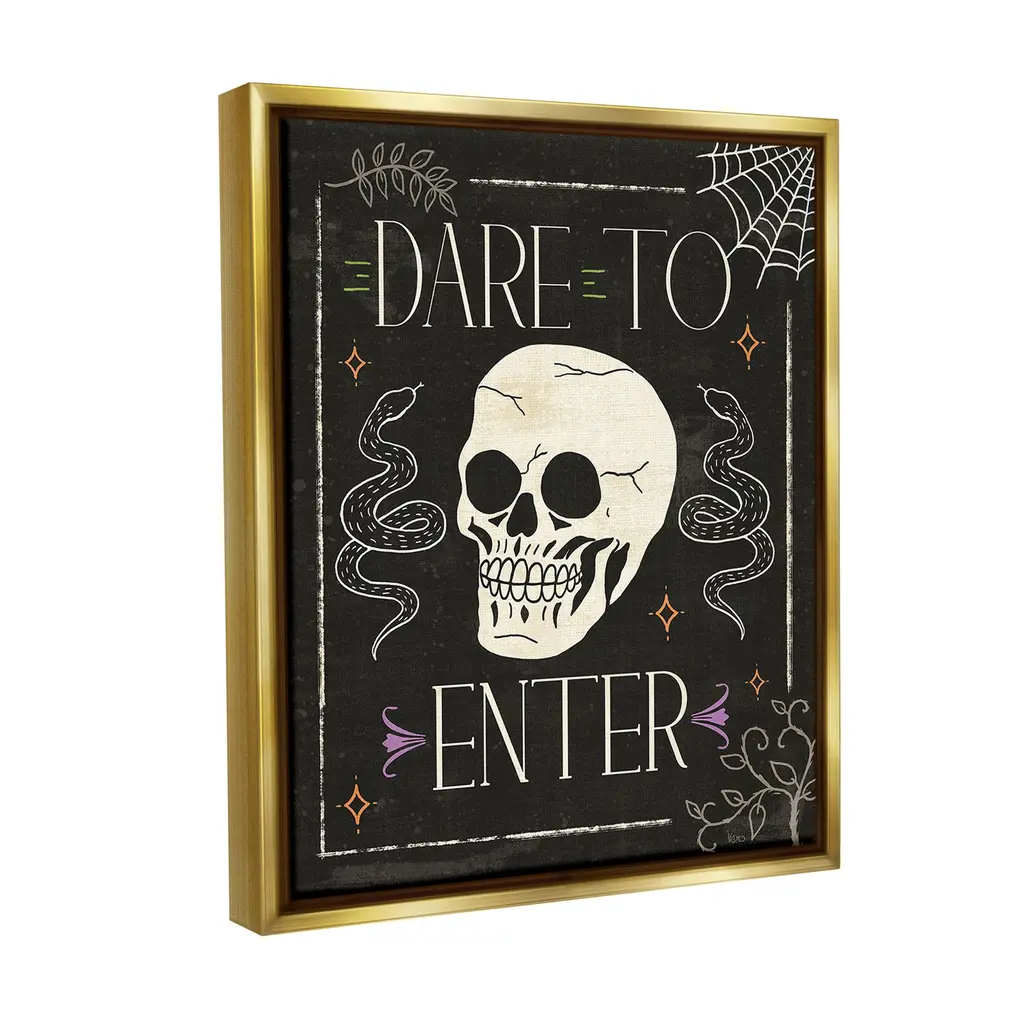 Elevate your home or office to the next level with Stupell Framed Floating Canvas Wall Art. Our premium hand-stretched canvas is mounted securely into a sturdy lightweight frame. The museum-style gap between the wrapped canvas and the box frame gives the illusion of floating artwork. Stupell Wall Art is made in the USA.Features: Dimensions: 17 x 1.7 x 21 Frame, 16 x 1.5 x 20 Canvas ArtFloating Frame Canvas Products are available in sizes 17"x21" and 25"x31". All Floating Frame Canvas Products have a 1.7" Depth.Wall Art is Ready to Hang with Hardware Free Hanging. No Installation required. For Easy Set Up Lean or Layer Artwork on Shelf or Against Wall. Artwork is Permently Fixed into the Frame.Our elevated 1.7" Thick Floating Frame is the perfect complement to our canvas style Wall Art. We use only the highest quality inks in house with industry leading printing solutions. Canvas is hand stretched over a durable wood foundation and then mounted securly into a Modern Box Frame. Made in the USA.Artwork Relates To: Festival, Halloween, Botanical, Snake, Skull, Spider, Stars, Web, Dare To EnterDesign by Veronique Charron