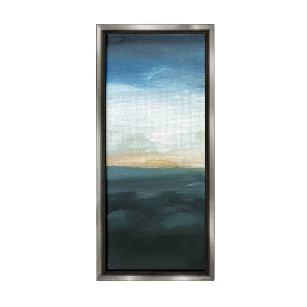 Elevate your home or office to the next level with Stupell Framed Floating Canvas Wall Art. Our premium hand-stretched canvas is mounted securely into a sturdy lightweight frame. The museum-style gap between the wrapped canvas and the box frame gives the illusion of floating artwork. Stupell Wall Art is made in the USA.Features: Dimensions: 11 x 1.7 x 25 Frame, 10 x 1.5 x 24 Canvas ArtFloating Frame Canvas Products are available in sizes 11"x25" and 14"x31". All Floating Frame Canvas Products have a 1.7" Depth.Wall Art is Ready to Hang with Hardware Free Hanging. No Installation required. For Easy Set Up Lean or Layer Artwork on Shelf or Against Wall. Artwork is Permently Fixed into the Frame.Our elevated 1.7" Thick Floating Frame is the perfect complement to our canvas style Wall Art. We use only the highest quality inks in house with industry leading printing solutions. Canvas is hand stretched over a durable wood foundation and then mounted securly into a Modern Box Frame. Made in the USA.Artwork Relates To: Nature, Water, Field, Landscape, Scenery, Abstract, Landscape, SunriseDesign by Ethan Harper