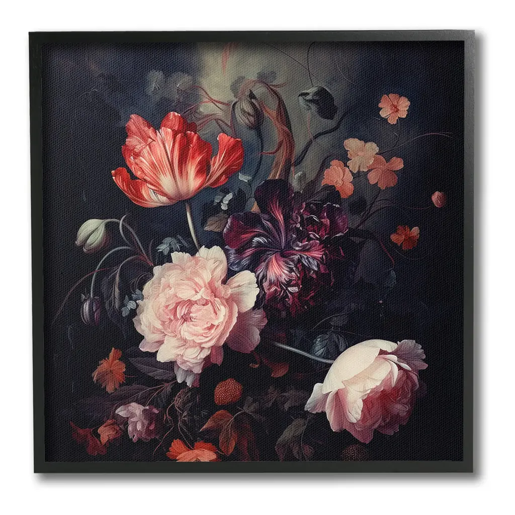Stupell Dark Elegant Flowers Wall Plaque Art Design By Lazar Studio - 12 X 12