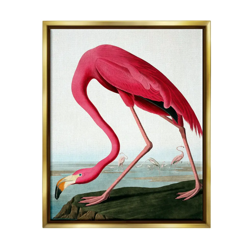 Elevate your home or office to the next level with Stupell Framed Floating Canvas Wall Art. Our premium hand-stretched canvas is mounted securely into a sturdy lightweight frame. The museum-style gap between the wrapped canvas and the box frame gives the illusion of floating artwork. Stupell Wall Art is made in the USA.Features: Dimensions: 21 x 1.7 x 17 Frame, 20 x 1.5 x 16 Canvas ArtFloating Frame Canvas Products are available in sizes 21"x17" and 31"x25". All Floating Frame Canvas Products have a 1.7" Depth.Wall Art is Ready to Hang with Hardware Free Hanging. No Installation required. For Easy Set Up Lean or Layer Artwork on Shelf or Against Wall. Artwork is Permently Fixed into the Frame.Our elevated 1.7" Thick Floating Frame is the perfect complement to our canvas style Wall Art. We use only the highest quality inks in house with industry leading printing solutions. Canvas is hand stretched over a durable wood foundation and then mounted securly into a Modern Box Frame. Made in the USA.Artwork Relates To: Animal, Bird, Flamingo, Abstract, Nature, PondDesign by GraffiTee Studios