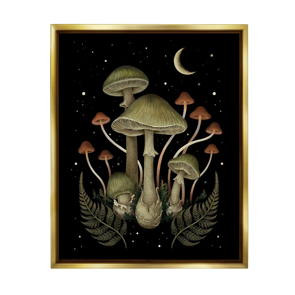 Stupell Dark Mushrooms With Moon Framed Floater Canvas Wall Art Design By Episodic Drawings - 17 X 21 - Gold
