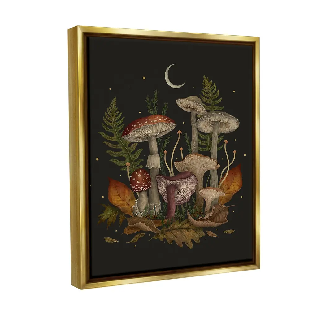 Elevate your home or office to the next level with Stupell Framed Floating Canvas Wall Art. Our premium hand-stretched canvas is mounted securely into a sturdy lightweight frame. The museum-style gap between the wrapped canvas and the box frame gives the illusion of floating artwork. Stupell Wall Art is made in the USA.Features: Dimensions: 17 x 1.7 x 21 Frame, 16 x 1.5 x 20 Canvas ArtFloating Frame Canvas Products are available in sizes 17"x21" and 25"x31". All Floating Frame Canvas Products have a 1.7" Depth.Wall Art is Ready to Hang with Hardware Free Hanging. No Installation required. For Easy Set Up Lean or Layer Artwork on Shelf or Against Wall. Artwork is Permently Fixed into the Frame.Our elevated 1.7" Thick Floating Frame is the perfect complement to our canvas style Wall Art. We use only the highest quality inks in house with industry leading printing solutions. Canvas is hand stretched over a durable wood foundation and then mounted securly into a Modern Box Frame. Made in the USA.Artwork Relates To: Fungus, Plant, Agaric, Mushroom, Amanita, Cottage, Astral, Moon, Pattern, Woodland, Leaf, NatureDesign by Episodic Drawings