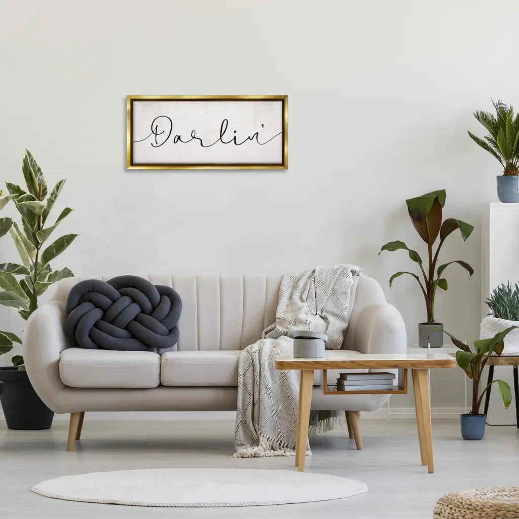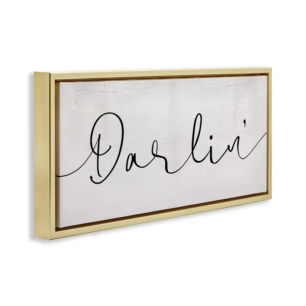 Stupell Darlin' Sentiment Elegant Cursive Framed Floater Canvas Wall Art Design By Daphne Polselli - 31 X 14 - Gold