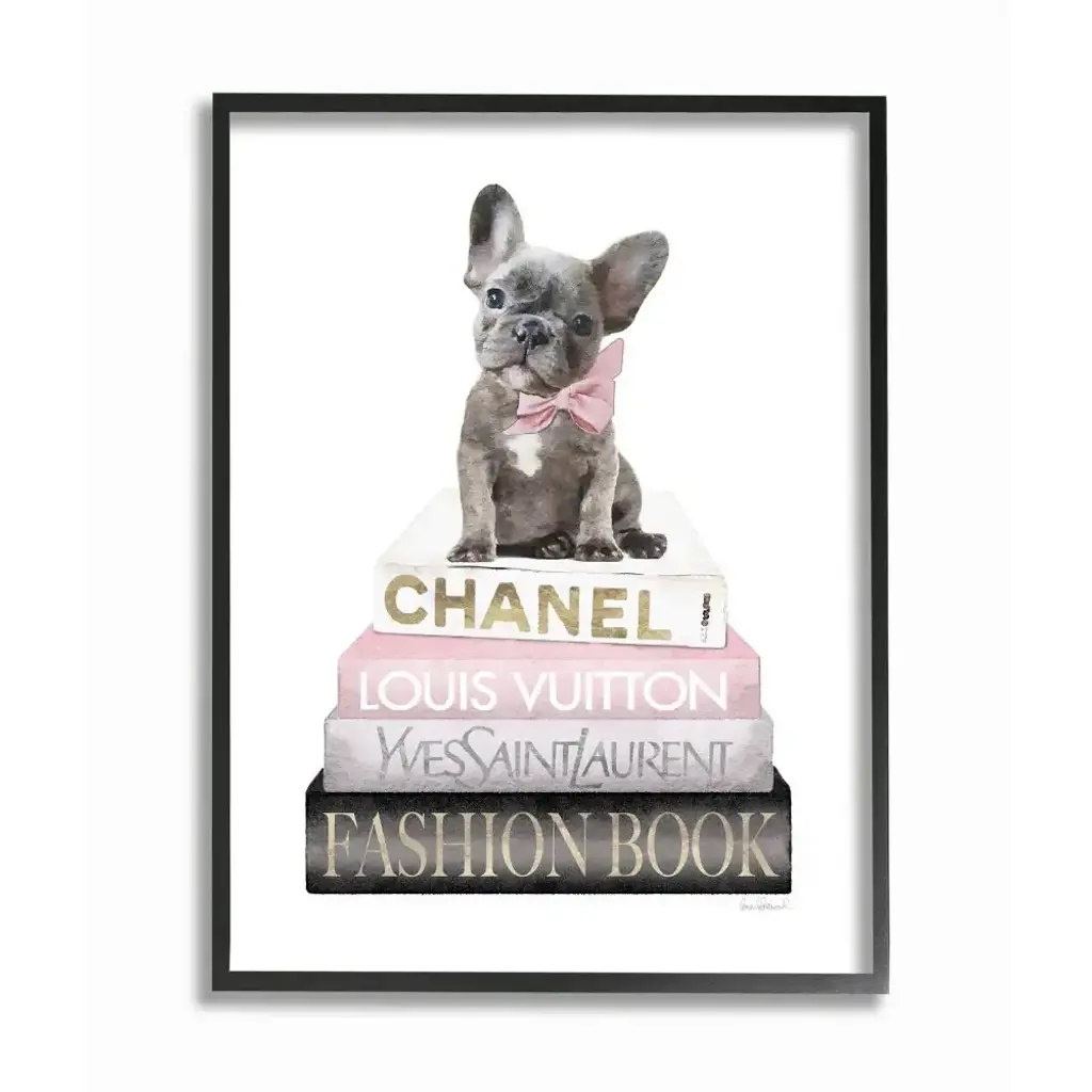 Stupell Dashing French Bulldog And Iconic Fashion Bookstack Framed Wall Art - Multi-Color - 11 X 14 - Grey