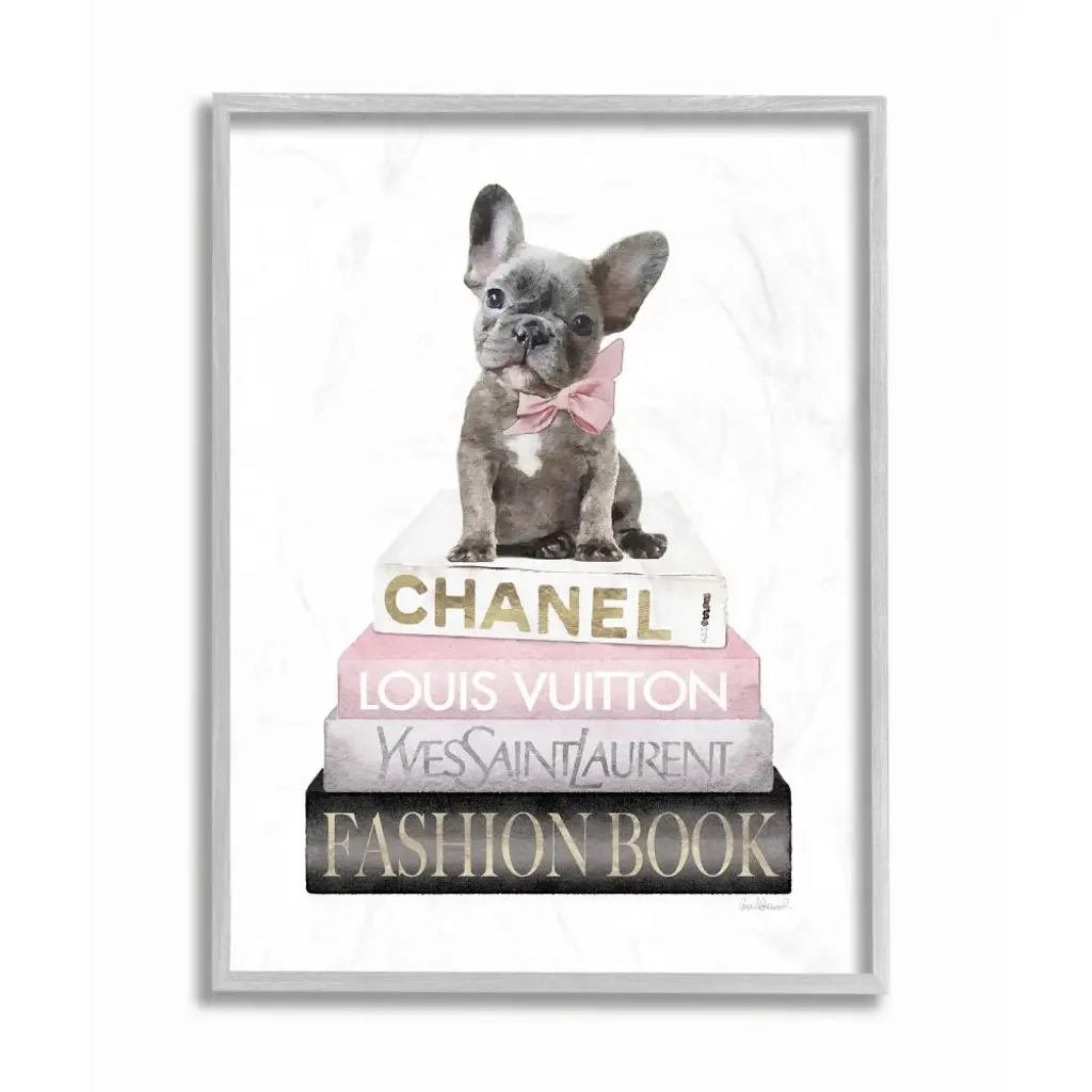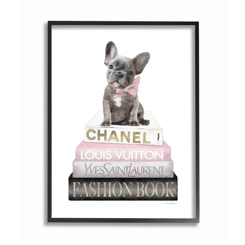 Stupell Dashing French Bulldog And Iconic Fashion Bookstack Framed Wall Art - Multi-Color - 16 X 20 - Black