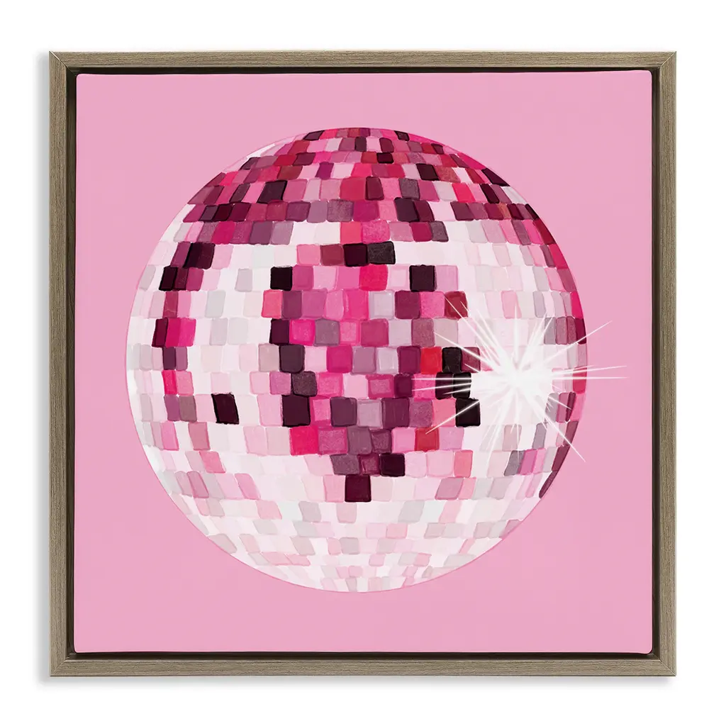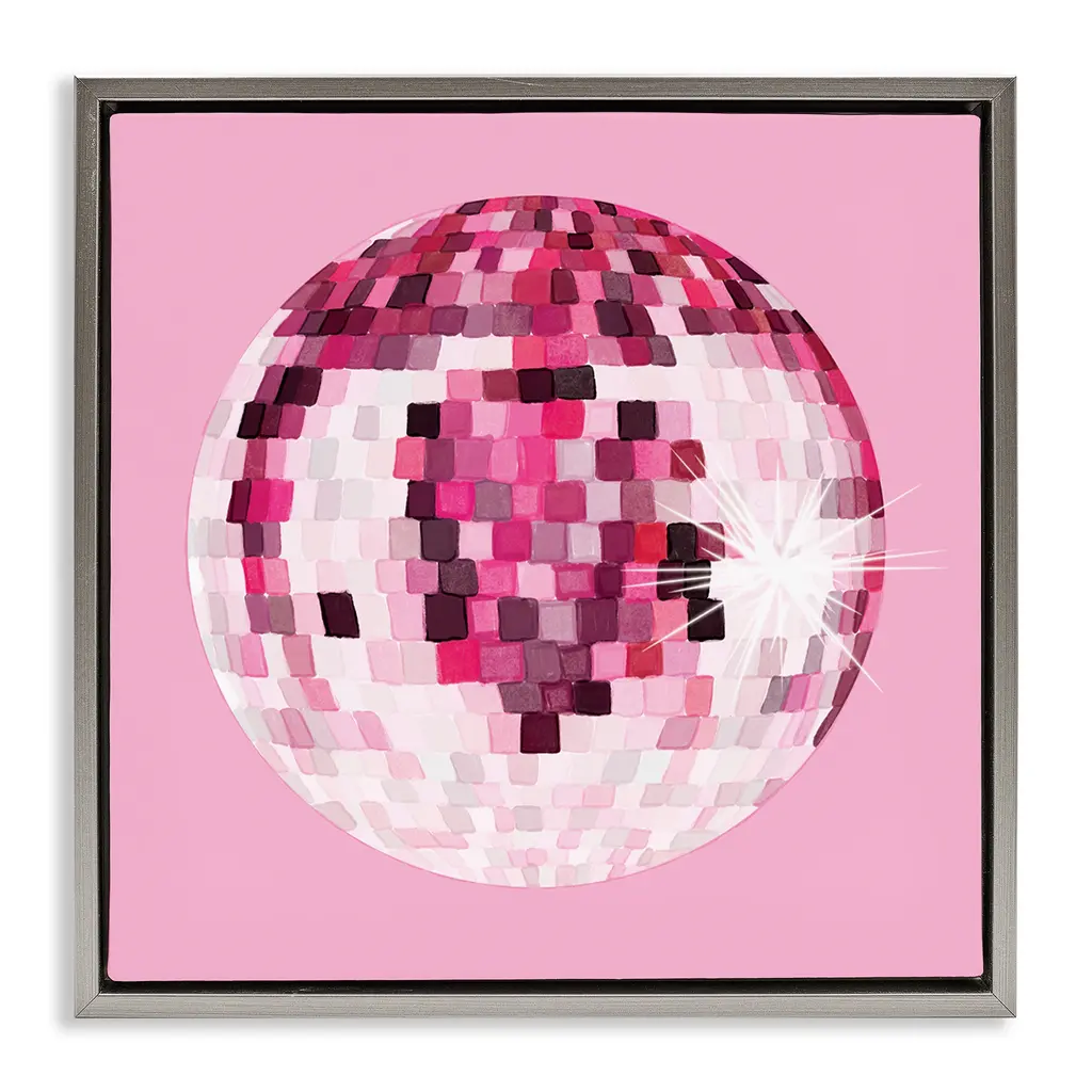 Stupell Dazzling Pink Disco Ball Framed Floater Canvas Wall Art Design By Hey Bre! Creative Studio - 18 X 18 - Grey