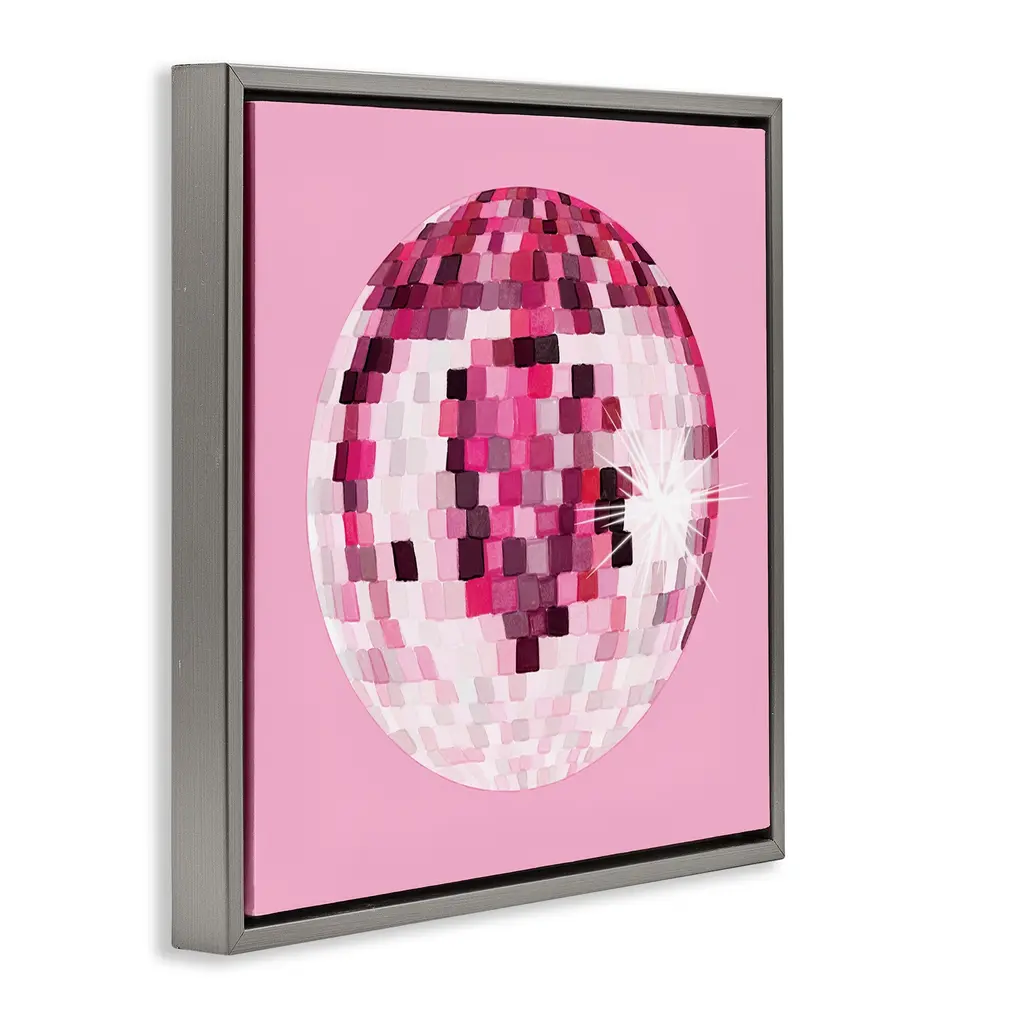 Stupell Dazzling Pink Disco Ball Framed Floater Canvas Wall Art Design By Hey Bre! Creative Studio - 25 X 25 - Grey
