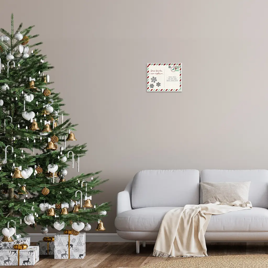 Add dimension to any room with our textured Framed Giclee Artwork. Our framed artwork is securely mounted into a 1.5-inch thick wood grain frame and ready to hang. Frames are available in three alluring styles: black, gray farmhouse and white. In addition, you should check out our oversized options if you want a statement piece. Stupell Wall Art is made in the USA.Features: Dimensions: 14 x 1.5 x 11 FramedFramed Giclee Products are available in the sizes 14"x11", 20"x16" or 30"x24". All Framed Giclee Products have a 1.5" Depth. Wall Art is Ready to Hang with Hardware Free Hanging. No installation required. For Easy Set Up Lean or Layer Artwork on Shelf or Against Wall.Our giclée prints are carefully mounted on a durable MDF backing, and then perfectly finished in a 1.5 inch thick woodgrain frame. Mounted frame colors include black, gray farmhouse and white. Made In USA.Artwork Relates To: Mail, Postcard, Holiday, Christmas, Seasonal, Snowflake, Santa, Humor, Funny, Dear Santa I Can ExplainDesign by Lil' Rue