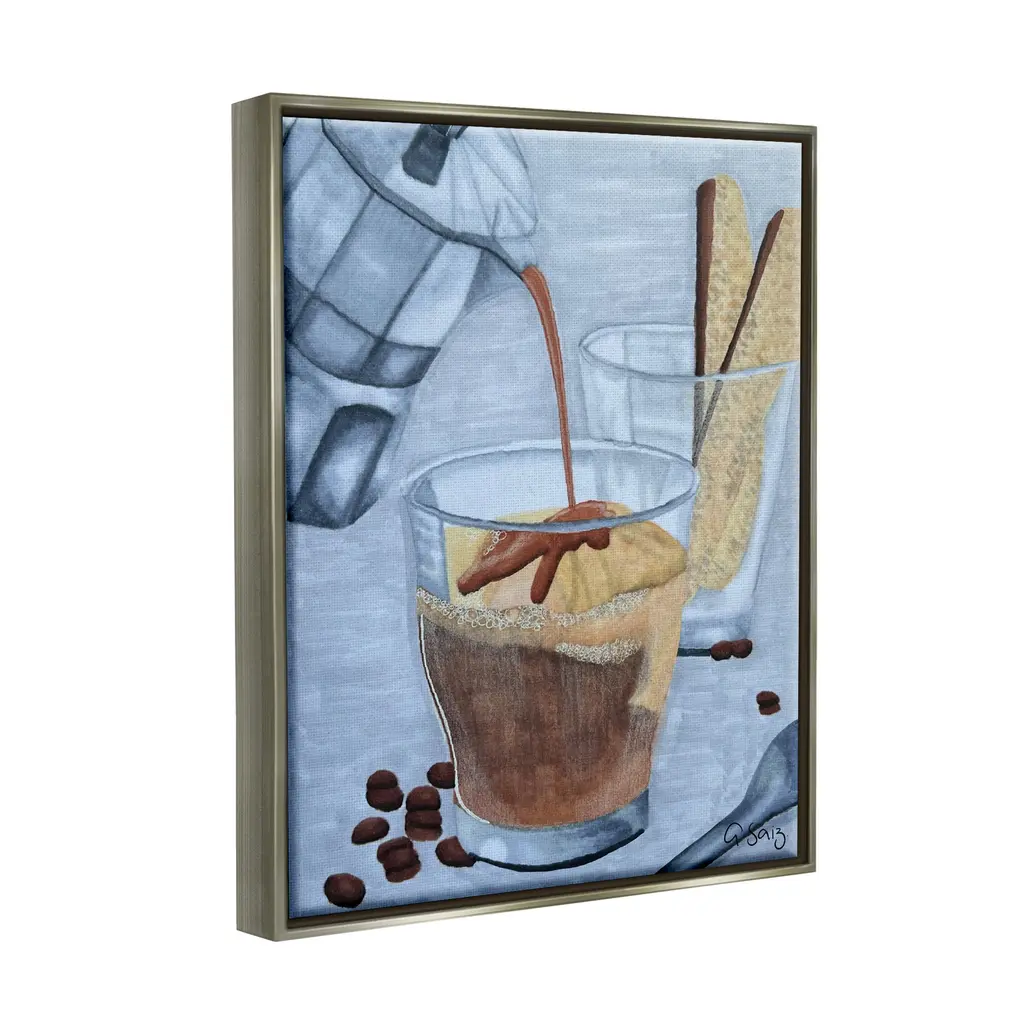 Elevate your home or office to the next level with Stupell Framed Floating Canvas Wall Art. Our premium hand-stretched canvas is mounted securely into a sturdy lightweight frame. The museum-style gap between the wrapped canvas and the box frame gives the illusion of floating artwork. Stupell Wall Art is made in the USA.Features: Dimensions: 17 x 1.7 x 21 Frame, 16 x 1.5 x 20 Canvas ArtFloating Frame Sizes Include Standard: 17 x 1.7 x 21 Oversized: 25 x 1.7 x 31Wall Art is Ready to Hang - No Installation or Hardware Needed. For Easy Set Up Lean or Layer Artwork on Shelf or Against Wall.Our elevated 1.7" Thick Floating Frame is the perfect complement to our canvas style Wall Art. We use only the highest quality inks in house with industry leading printing solutions. Canvas is hand stretched over a durable wood foundation and then mounted securly into a Modern Box Frame. Made in the USA.Artwork Relates To: Cup, Food, Beverage, Coffee, Coffee Cup, Dessert, Espresso, Moka PotDesign by Ale Saiz Studio