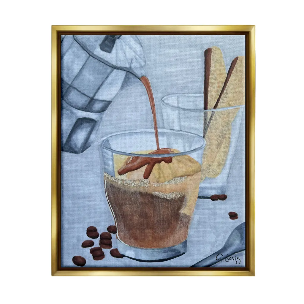 Stupell Decadent Dessert Espresso Pour Framed Floater Canvas Wall Art By Ale Saiz Studio - 24 X 30 - Gold