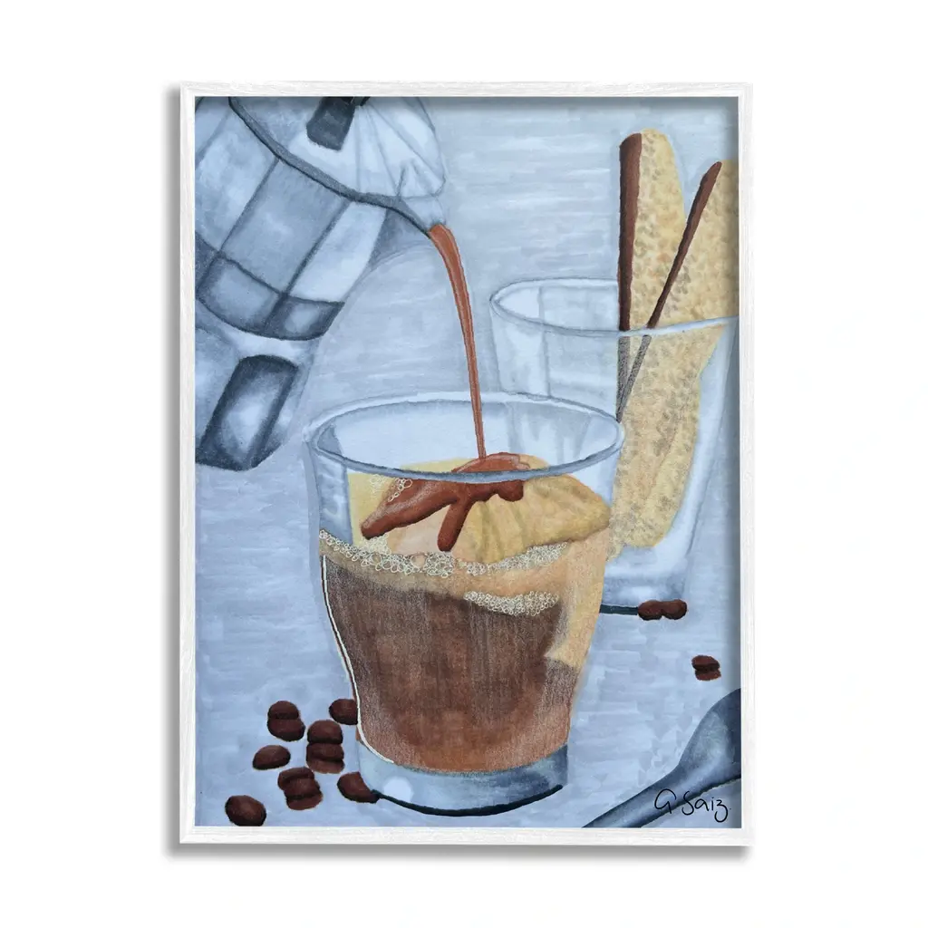 Add dimension to any room with our textured Framed Giclee Artwork. Our framed artwork is securely mounted into a 1.5-inch thick wood grain frame and ready to hang. Frames are available in three alluring styles: black, gray farmhouse and white. In addition, you should check out our oversized options if you want a statement piece. Stupell Wall Art is made in the USA.Features: Dimensions: 11 x 1.5 x 14 FramedFramed Giclee Sizes Include Standard: 11 x 1.5 x 14 Large: 16 x 1.5 x 20 Oversized: 24 x 1.5 x 30Wall Art is Ready to Hang - No Installation or Hardware Needed. For Easy Set Up Lean or Layer Artwork on Shelf or Against Wall.Our giclée prints are carefully mounted on a durable MDF backing, and then perfectly finished in a 1.5 inch thick woodgrain frame. Mounted frame colors include black, gray farmhouse and white. Made In USA.Artwork Relates To: Cup, Food, Beverage, Coffee, Coffee Cup, Dessert, Espresso, Moka PotDesign by Ale Saiz Studio