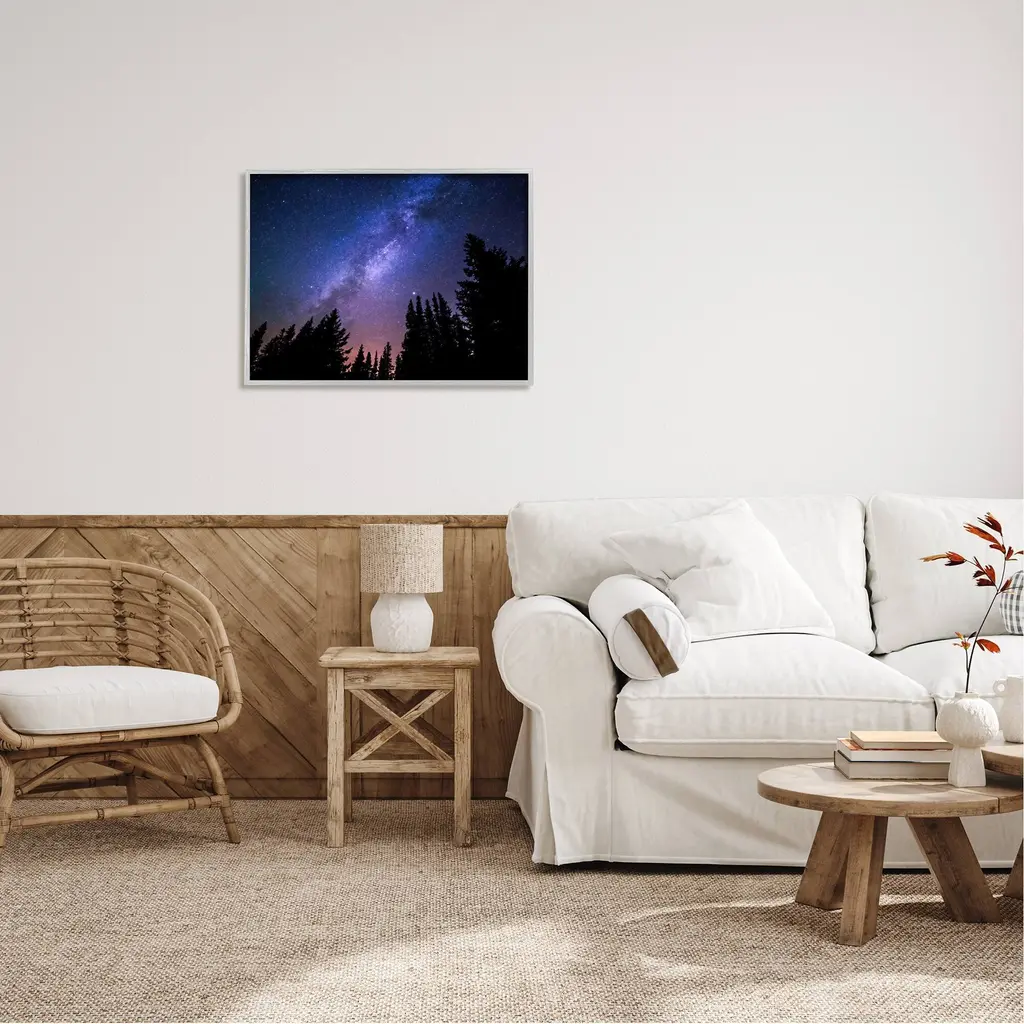 Stupell Deep Blue & Purple Galaxy Sky Stars Woodlands Border Framed Wall Art - 30 X 24 - Grey