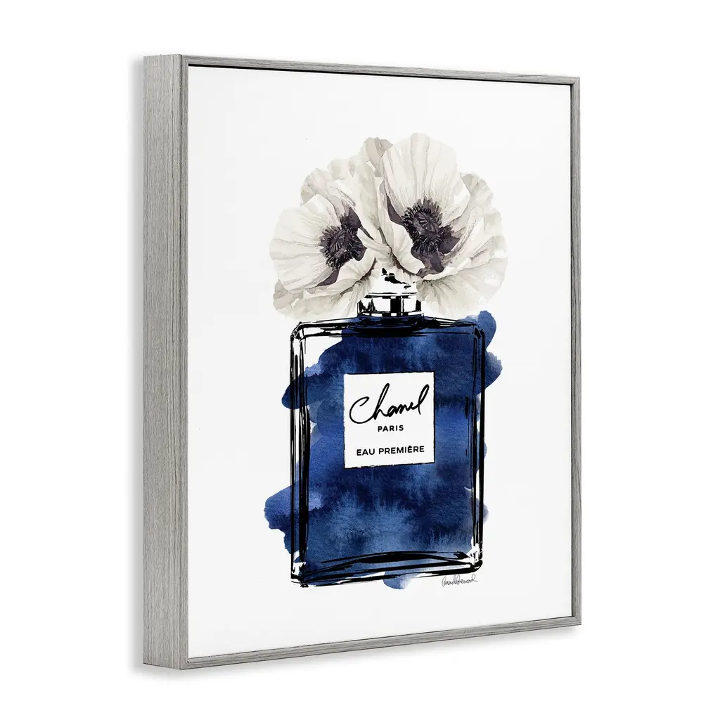 Stupell Deep Blue Fashion Fragrance Bottle Glam Florals Framed Wall Art - 11 X 14 - Grey