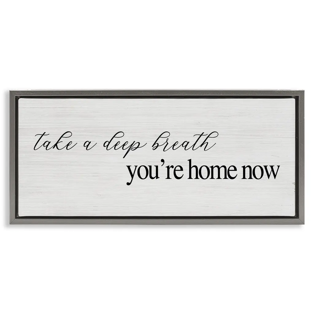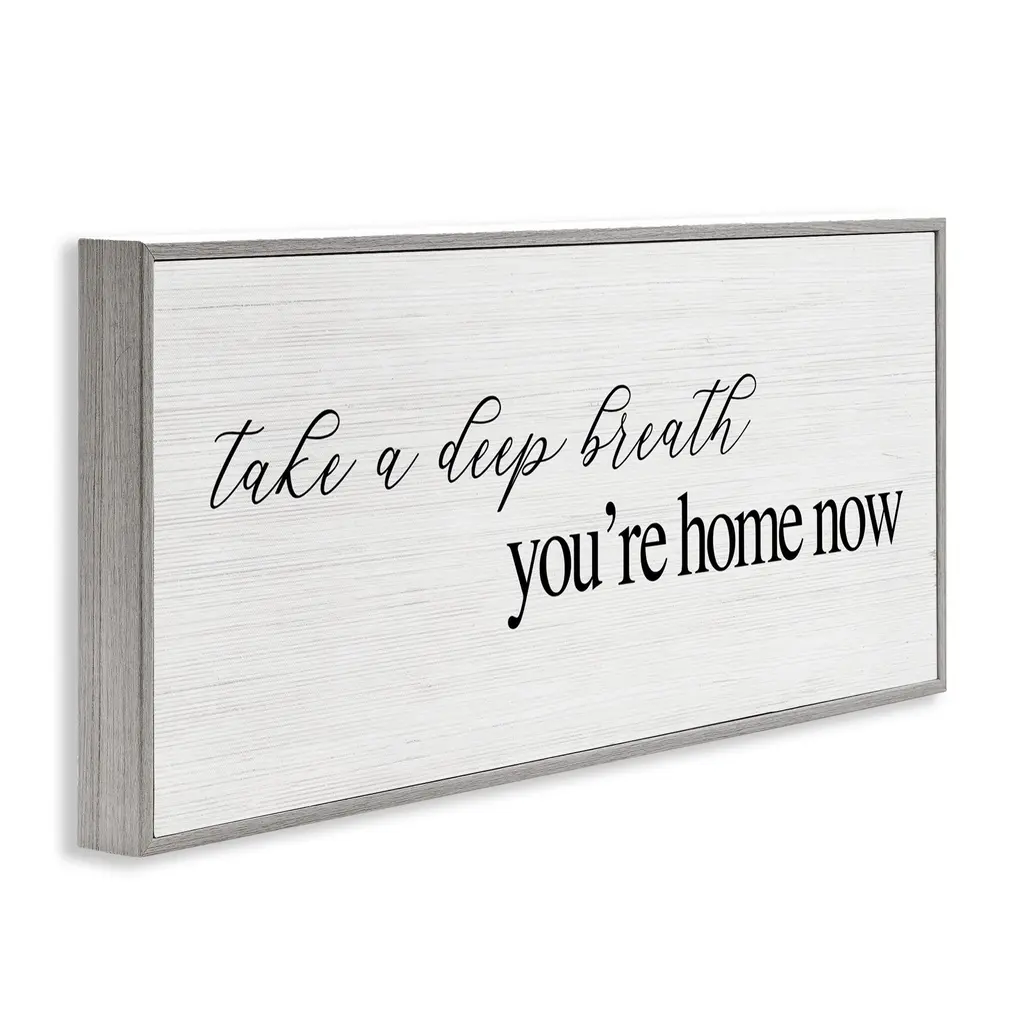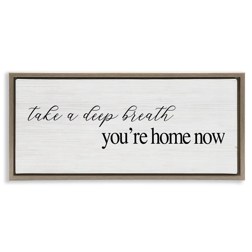 Stupell Deep Breath You're Home Phrase Framed Giclee Art Design By Daphne Polselli - 24 X 10 - Grey