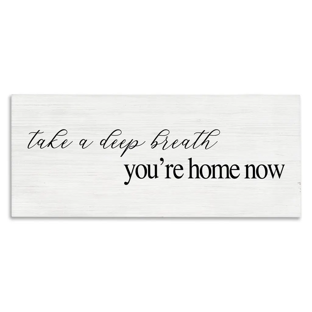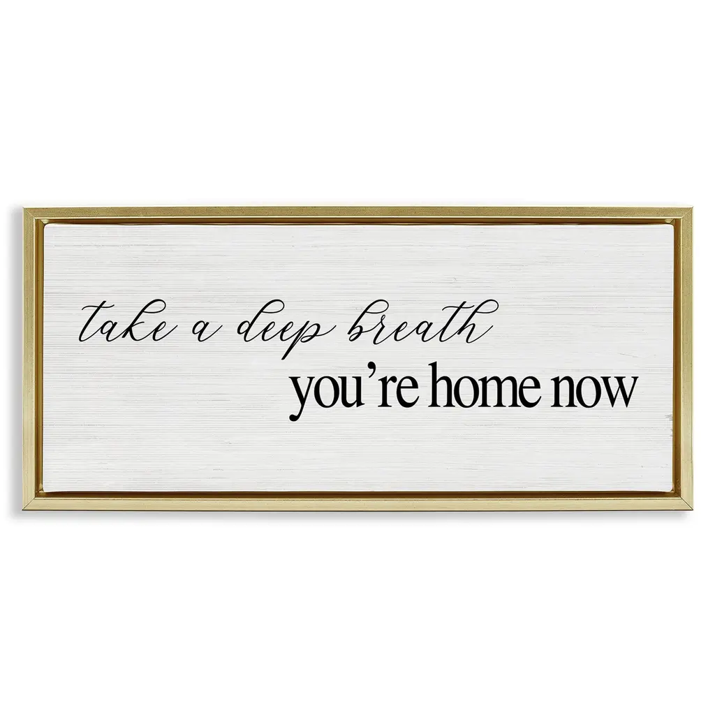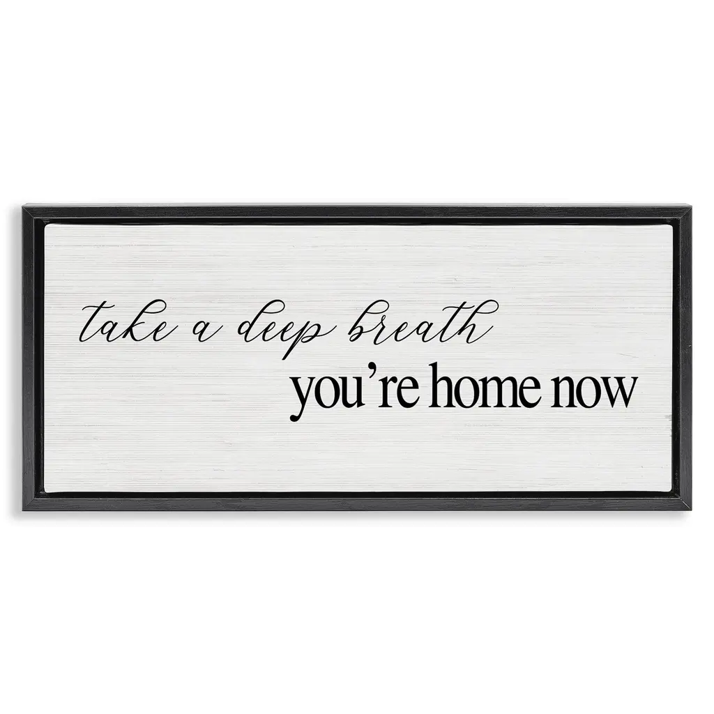 Stupell Deep Breath You're Home Phrase Framed Giclee Art Design By Daphne Polselli - 24 X 10 - Grey