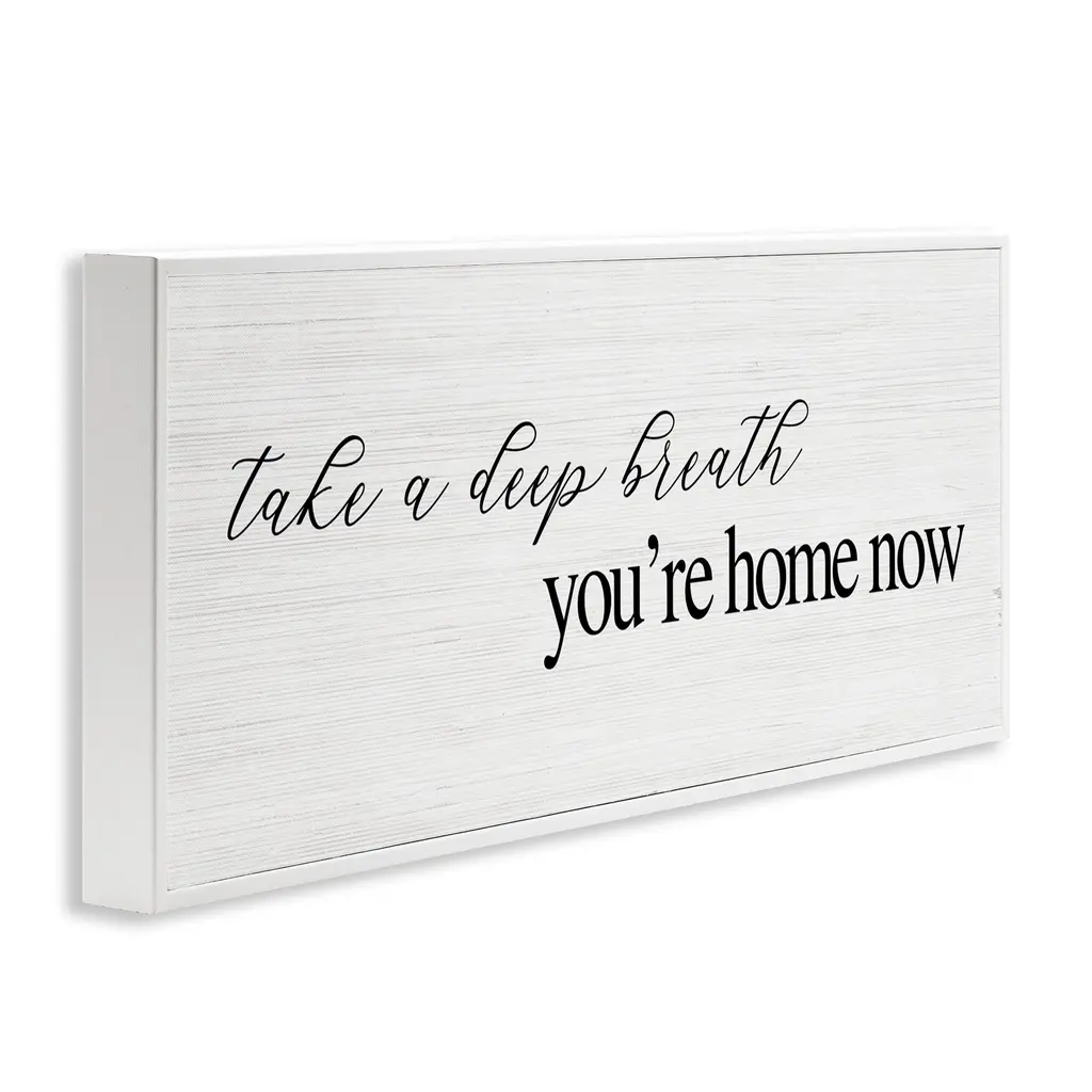 Stupell Deep Breath You're Home Phrase Framed Giclee Art Design By Daphne Polselli - 30 X 13 - White