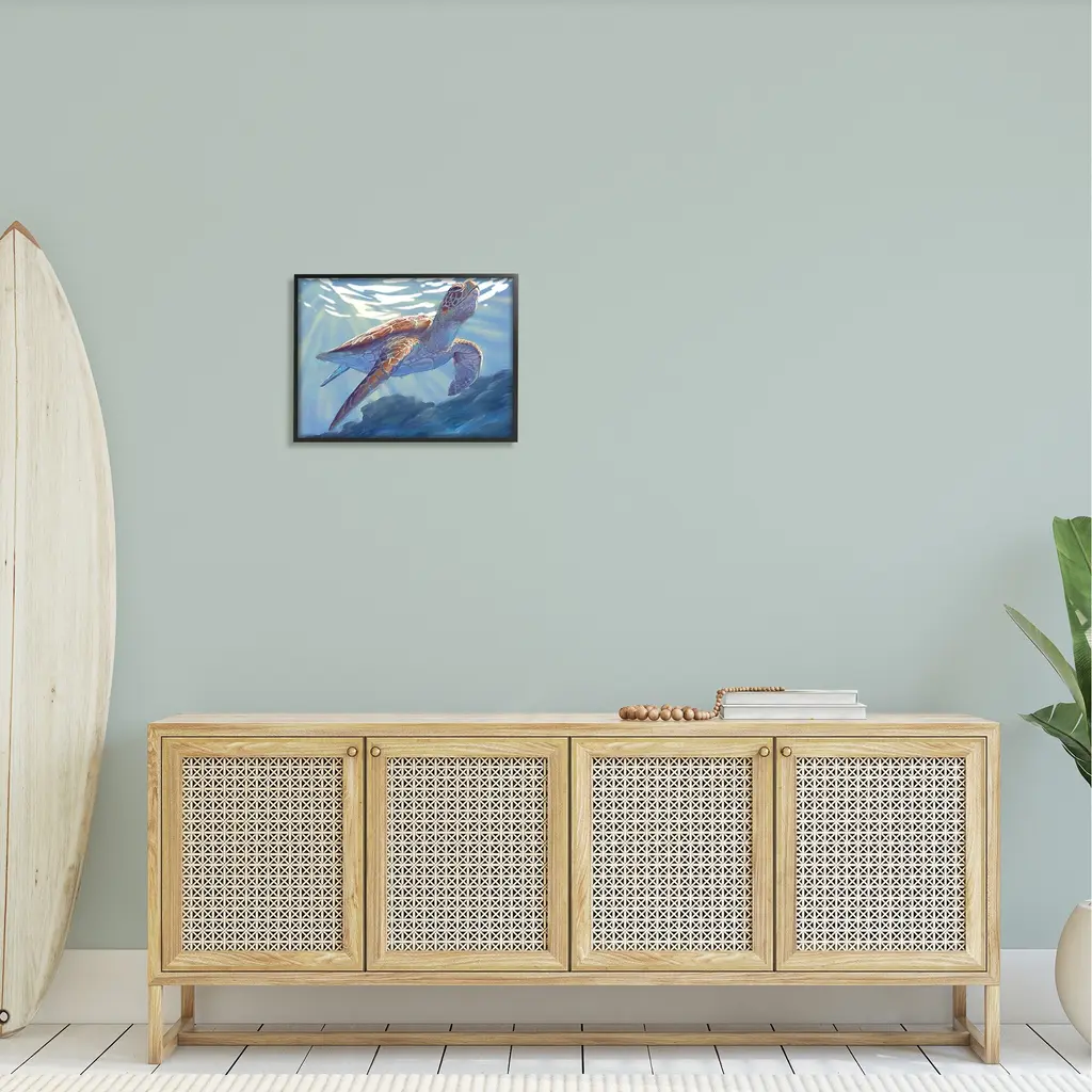 Our Framed Giclee Wall Art adds a touch of class to any space in your home or office. Frames are available in three alluring styles: black, gray farmhouse and white. Our textured artwork will add more depth and dimension to any space. Each piece is mounted with a 1.5 inch thick wood grain frame that is ready to hang! Looking for a statement piece? We have oversized artwork available.Features:Framed Giclee Sizes IncludeStandard: 14 x 1.5 x 11Large: 20 x 1.5 x 16Oversized: 30 x 1.5 x 24Wall Art is Ready to Hang - No Installation or Hardware Needed. For Easy Set Up Lean or Layer Artwork on Shelf or Against Wall.Artwork Relates To: Turtle, Sea Life, Animal, Reptile, Sea Turtle, Nature, Sea, Ocean, Water, Tortoise, Bird, Reef, Underwater, Sea, SwimmingOur giclee prints are carefully mounted on a durable MDF backing, and then perfectly finished in a 1.5 inch thick woodgrain frame. Mounted frame colors include black, gray farmhouse and white. Made In USA.Design by Ziwei Li