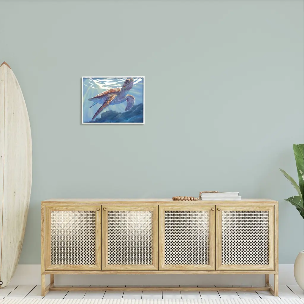 Our Framed Giclee Wall Art adds a touch of class to any space in your home or office. Frames are available in three alluring styles: black, gray farmhouse and white. Our textured artwork will add more depth and dimension to any space. Each piece is mounted with a 1.5 inch thick wood grain frame that is ready to hang! Looking for a statement piece? We have oversized artwork available.Features:Framed Giclee Sizes IncludeStandard: 14 x 1.5 x 11Large: 20 x 1.5 x 16Oversized: 30 x 1.5 x 24Wall Art is Ready to Hang - No Installation or Hardware Needed. For Easy Set Up Lean or Layer Artwork on Shelf or Against Wall.Artwork Relates To: Turtle, Sea Life, Animal, Reptile, Sea Turtle, Nature, Sea, Ocean, Water, Tortoise, Bird, Reef, Underwater, Sea, SwimmingOur giclee prints are carefully mounted on a durable MDF backing, and then perfectly finished in a 1.5 inch thick woodgrain frame. Mounted frame colors include black, gray farmhouse and white. Made In USA.Design by Ziwei Li