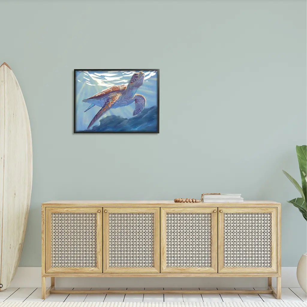 Our Framed Giclee Wall Art adds a touch of class to any space in your home or office. Frames are available in three alluring styles: black, gray farmhouse and white. Our textured artwork will add more depth and dimension to any space. Each piece is mounted with a 1.5 inch thick wood grain frame that is ready to hang! Looking for a statement piece? We have oversized artwork available.Features:Framed Giclee Sizes IncludeStandard: 14 x 1.5 x 11Large: 20 x 1.5 x 16Oversized: 30 x 1.5 x 24Wall Art is Ready to Hang - No Installation or Hardware Needed. For Easy Set Up Lean or Layer Artwork on Shelf or Against Wall.Artwork Relates To: Turtle, Sea Life, Animal, Reptile, Sea Turtle, Nature, Sea, Ocean, Water, Tortoise, Bird, Reef, Underwater, Sea, SwimmingOur giclee prints are carefully mounted on a durable MDF backing, and then perfectly finished in a 1.5 inch thick woodgrain frame. Mounted frame colors include black, gray farmhouse and white. Made In USA.Design by Ziwei Li