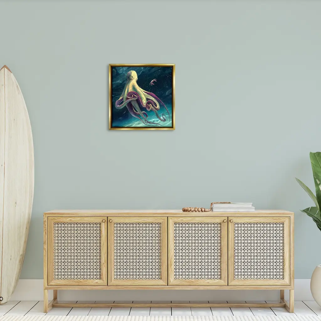 Elevate your home or office to the next level with Stupell Framed Floating Canvas Wall Art. Our premium hand-stretched canvas is mounted securely into a sturdy lightweight frame. The museum-style gap between the wrapped canvas and the box frame gives the illusion of floating artwork. Stupell Wall Art is made in the USA.Features: Dimensions: 18 x 1.7 x 18 Frame, 17 x 1.5 x 17 Canvas ArtFloating Frame Canvas Products are available in sizes 18"x18" and 25"x25". All Floating Frame Canvas Products have a 1.7" Depth.Wall Art is Ready to Hang with Hardware Free Hanging. No Installation required. For Easy Set Up Lean or Layer Artwork on Shelf or Against Wall. Artwork is Permently Fixed into the Frame.Our elevated 1.7" Thick Floating Frame is the perfect complement to our canvas style Wall Art. We use only the highest quality inks in house with industry leading printing solutions. Canvas is hand stretched over a durable wood foundation and then mounted securly into a Modern Box Frame. Made in the USA.Artwork Relates To: Animal, Sea Life, Invertebrate, Octopus, Marine, Ocean, Nautical, BeachDesign by Vlad Mel