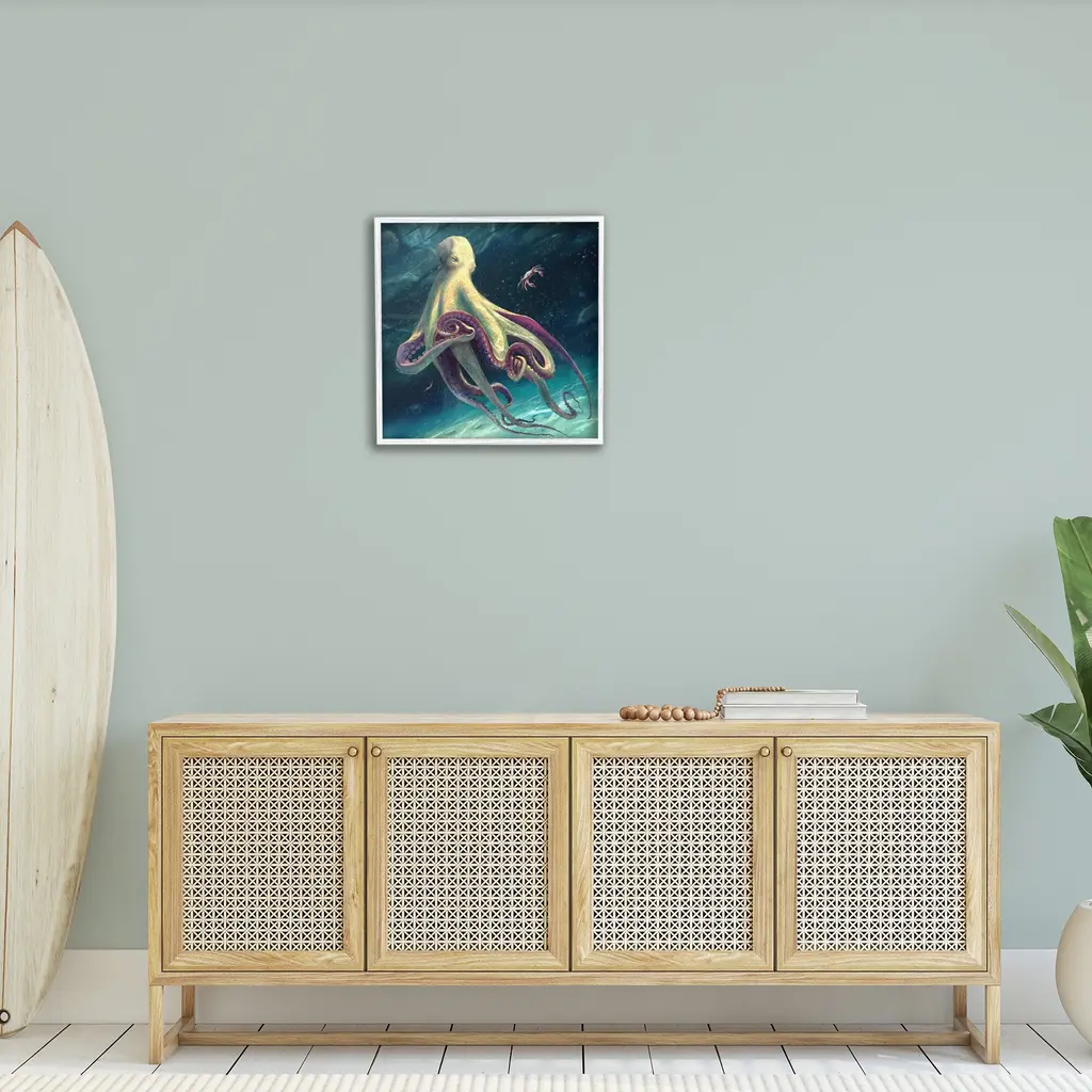 Stupell Deep Water Octopus Framed Giclee Art Design By Vlad Mel - 24 X 24 - White