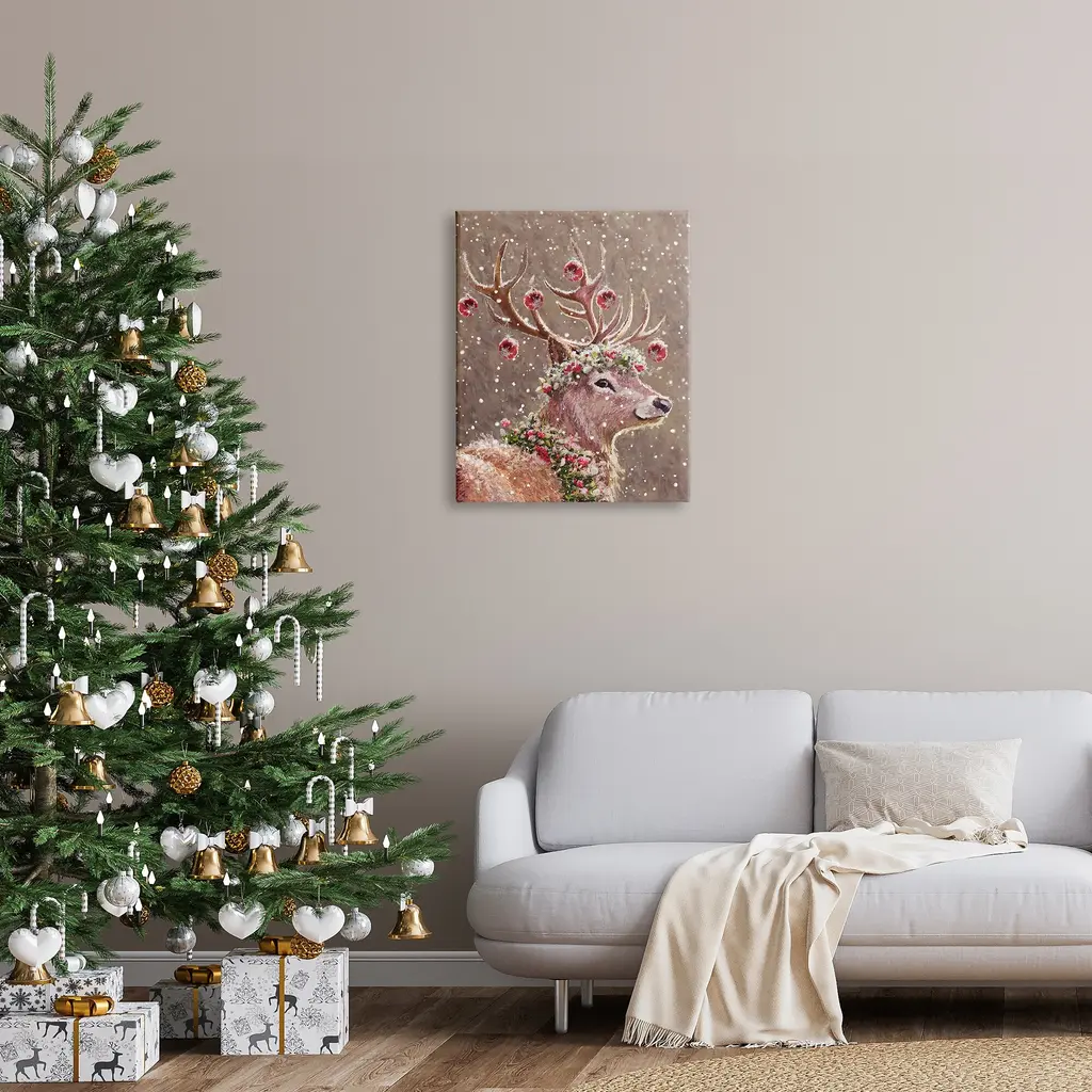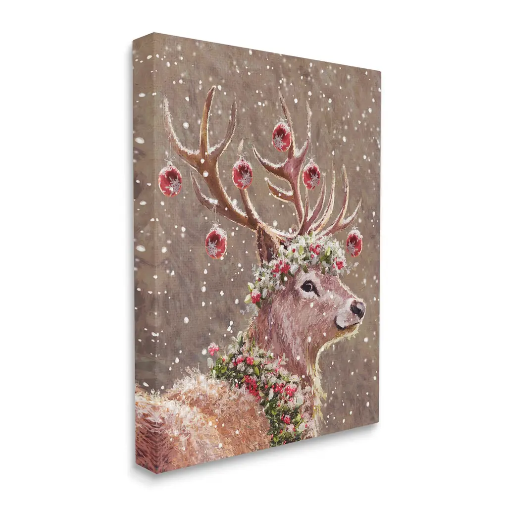 We create our stretched canvas to the highest standards. Using only the highest quality inks and canvas on Mimaki printers, we hand-cut and stretch each piece over a 1.5-inch thick wooden frame for hanging. As a result, the art comes ready to hang on the sturdy ledge with no installation required. Stupell Wall Art is made in the USA.Features: Dimensions: 16 x 1.5 x 20 InchesStretched Canvas Sizes Include Standard: 16 x 1.5 x 20 Large: 20 x 1.5 x 30 X-Large: 30 x 1.5 x 40 Oversized: 36 x 1.5 x 48Wall Art is Ready to Hang - No Installation or Hardware Needed. For Easy Set Up Lean or Layer Artwork on Shelf or Against Wall.Our stretched canvas is created with the highest standards. We use only the highest quality inks and canvas on our in house Mimaki printers, and then hand cut and stretch each piece over a 1.5 inch thick wooden frame for hanging. Made In USA.Artwork Relates To: Animal, Mammal, Flower, Holly Berry, Botanical, Christmas, Snow, Deer, OrnamentsDesign by Pip Wilson