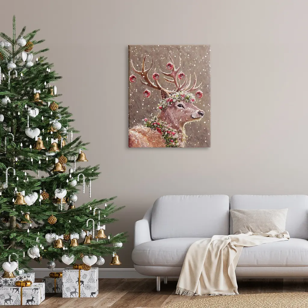 We create our stretched canvas to the highest standards. Using only the highest quality inks and canvas on Mimaki printers, we hand-cut and stretch each piece over a 1.5-inch thick wooden frame for hanging. As a result, the art comes ready to hang on the sturdy ledge with no installation required. Stupell Wall Art is made in the USA.Features: Dimensions: 16 x 1.5 x 20 InchesStretched Canvas Sizes Include Standard: 16 x 1.5 x 20 Large: 20 x 1.5 x 30 X-Large: 30 x 1.5 x 40 Oversized: 36 x 1.5 x 48Wall Art is Ready to Hang - No Installation or Hardware Needed. For Easy Set Up Lean or Layer Artwork on Shelf or Against Wall.Our stretched canvas is created with the highest standards. We use only the highest quality inks and canvas on our in house Mimaki printers, and then hand cut and stretch each piece over a 1.5 inch thick wooden frame for hanging. Made In USA.Artwork Relates To: Animal, Mammal, Flower, Holly Berry, Botanical, Christmas, Snow, Deer, OrnamentsDesign by Pip Wilson