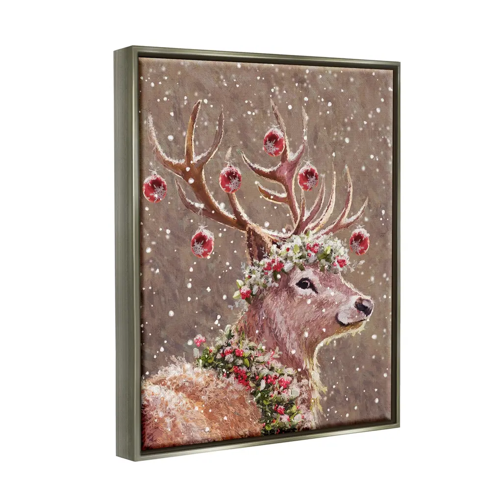 Elevate your home or office to the next level with Stupell Framed Floating Canvas Wall Art. Our premium hand-stretched canvas is mounted securely into a sturdy lightweight frame. The museum-style gap between the wrapped canvas and the box frame gives the illusion of floating artwork. Stupell Wall Art is made in the USA.Features: Dimensions: 17 x 1.7 x 21 Frame, 16 x 1.5 x 20 Canvas ArtFloating Frame Sizes Include Standard: 17 x 1.7 x 21 Oversized: 25 x 1.7 x 31Wall Art is Ready to Hang - No Installation or Hardware Needed. For Easy Set Up Lean or Layer Artwork on Shelf or Against Wall.Our elevated 1.7" Thick Floating Frame is the perfect complement to our canvas style Wall Art. We use only the highest quality inks in house with industry leading printing solutions. Canvas is hand stretched over a durable wood foundation and then mounted securly into a Modern Box Frame. Made in the USA.Artwork Relates To: Animal, Mammal, Flower, Holly Berry, Botanical, Christmas, Snow, Deer, OrnamentsDesign by Pip Wilson