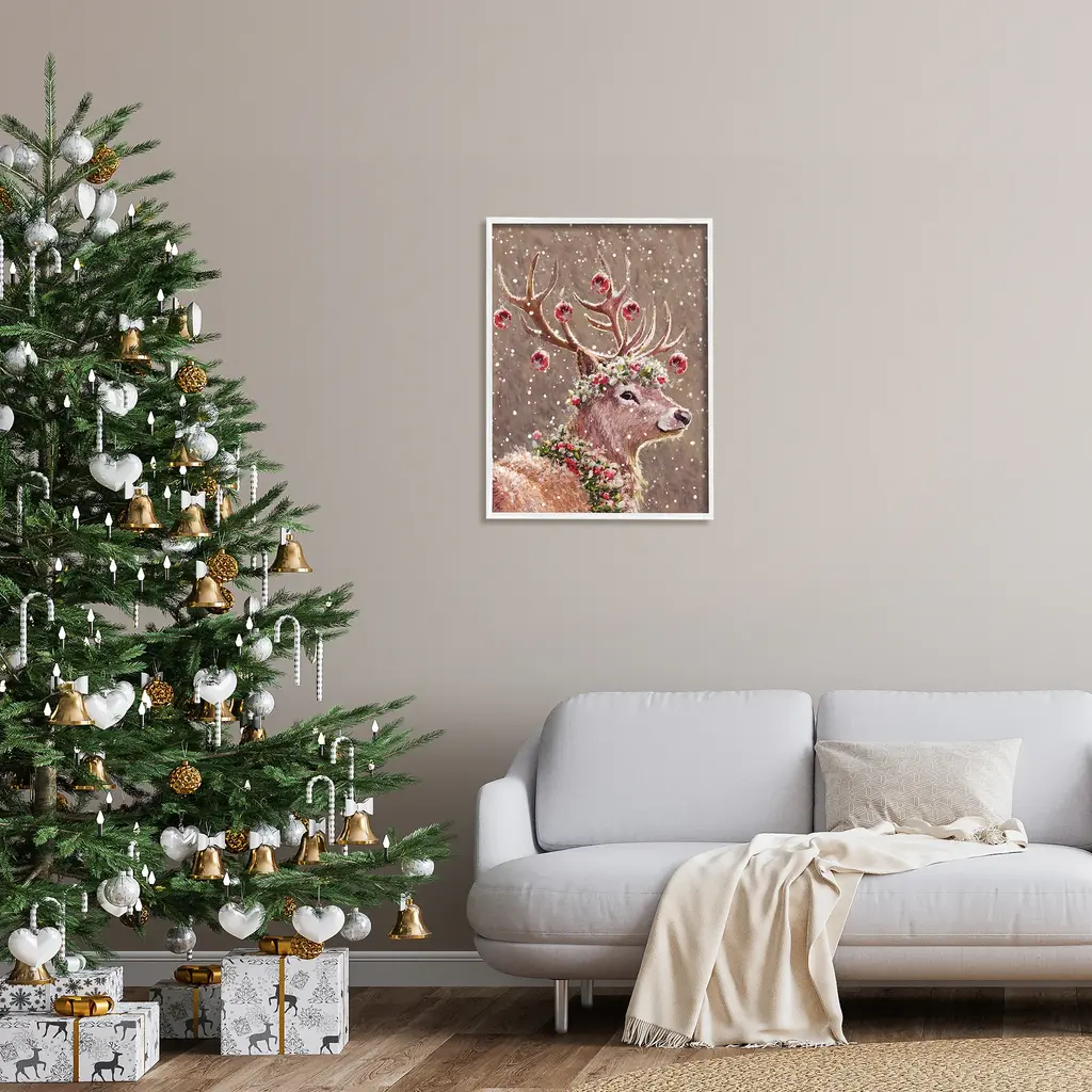 Add dimension to any room with our textured Framed Giclee Artwork. Our framed artwork is securely mounted into a 1.5-inch thick wood grain frame and ready to hang. Frames are available in three alluring styles: black, gray farmhouse and white. In addition, you should check out our oversized options if you want a statement piece. Stupell Wall Art is made in the USA.Features: Dimensions: 11 x 1.5 x 14 FramedFramed Giclee Sizes Include Standard: 11 x 1.5 x 14 Large: 16 x 1.5 x 20 Oversized: 24 x 1.5 x 30Wall Art is Ready to Hang - No Installation or Hardware Needed. For Easy Set Up Lean or Layer Artwork on Shelf or Against Wall.Our giclée prints are carefully mounted on a durable MDF backing, and then perfectly finished in a 1.5 inch thick woodgrain frame. Mounted frame colors include black, gray farmhouse and white. Made In USA.Artwork Relates To: Animal, Mammal, Flower, Holly Berry, Botanical, Christmas, Snow, Deer, OrnamentsDesign by Pip Wilson