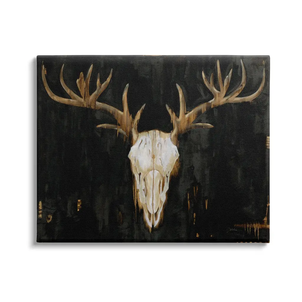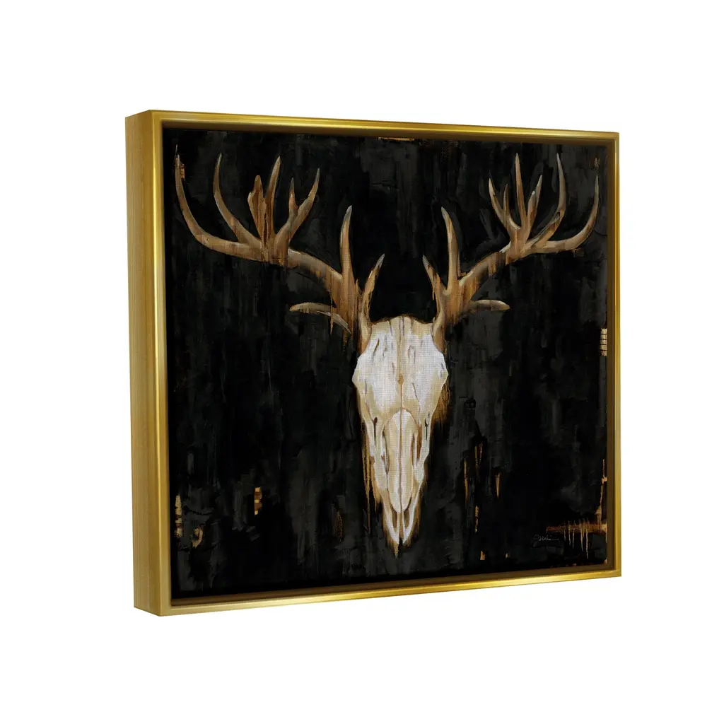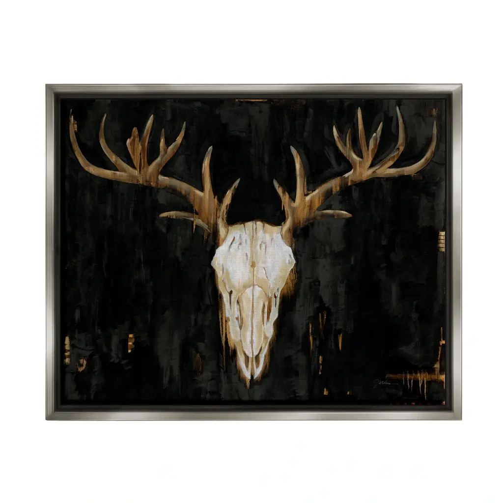 Elevate your home or office to the next level with Stupell Framed Floating Canvas Wall Art. Our premium hand-stretched canvas is mounted securely into a sturdy lightweight frame. The museum-style gap between the wrapped canvas and the box frame gives the illusion of floating artwork. Stupell Wall Art is made in the USA.Features: Dimensions: 21 x 1.7 x 17 Frame, 20 x 1.5 x 16 Canvas ArtFloating Frame Sizes Include Standard: 21 x 1.7 x 17 Oversized: 31 x 1.7 x 25Wall Art is Ready to Hang - No Installation or Hardware Needed. For Easy Set Up Lean or Layer Artwork on Shelf or Against Wall.Our elevated 1.7" Thick Floating Frame is the perfect complement to our canvas style Wall Art. We use only the highest quality inks in house with industry leading printing solutions. Canvas is hand stretched over a durable wood foundation and then mounted securly into a Modern Box Frame. Made in the USA.Artwork Relates To: Animal, Deer, Mammal, Wildlife, Elk, Antler, SkullDesign by Liz Jardine