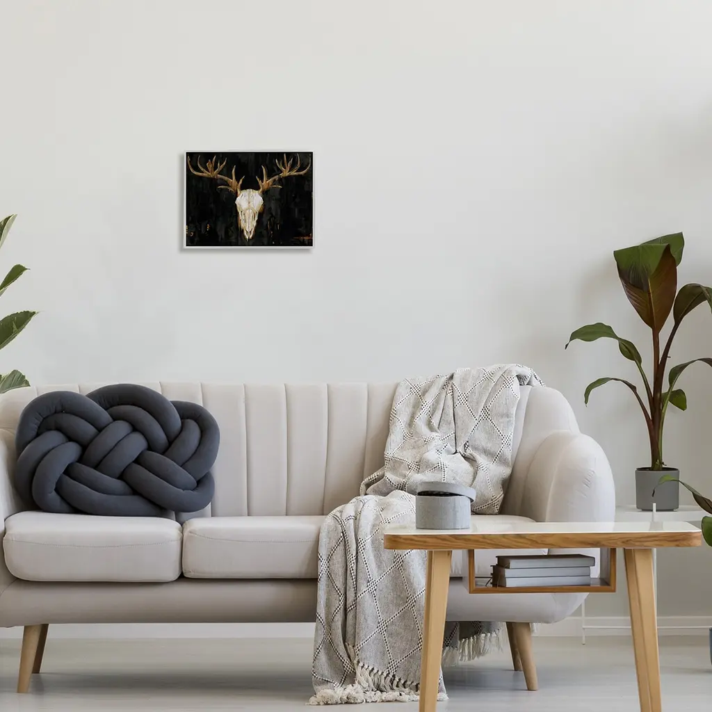 Add dimension to any room with our textured Framed Giclee Artwork. Our framed artwork is securely mounted into a 1.5-inch thick wood grain frame and ready to hang. Frames are available in three alluring styles: black, gray farmhouse and white. In addition, you should check out our oversized options if you want a statement piece. Stupell Wall Art is made in the USA.Features: Dimensions: 14 x 1.5 x 11 FramedFramed Giclee Sizes Include Standard: 14 x 1.5 x 11 Large: 20 x 1.5 x 16 Oversized: 30 x 1.5 x 24Wall Art is Ready to Hang - No Installation or Hardware Needed. For Easy Set Up Lean or Layer Artwork on Shelf or Against Wall.Our giclée prints are carefully mounted on a durable MDF backing, and then perfectly finished in a 1.5 inch thick woodgrain frame. Mounted frame colors include black, gray farmhouse and white. Made In USA.Artwork Relates To: Animal, Deer, Mammal, Wildlife, Elk, Antler, SkullDesign by Liz Jardine