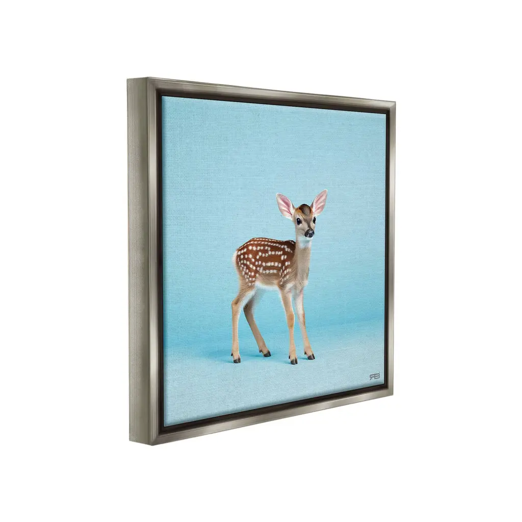 Elevate your home or office to the next level with Stupell Framed Floating Canvas Wall Art. Our premium hand-stretched canvas is mounted securely into a sturdy lightweight frame. The museum-style gap between the wrapped canvas and the box frame gives the illusion of floating artwork. Stupell Wall Art is made in the USA.Features: Dimensions: 18 x 1.7 x 18 Frame, 17 x 1.5 x 17 Canvas ArtFloating Frame Canvas Products are available in sizes 18"x18" and 25"x25". All Floating Frame Canvas Products have a 1.7" Depth.Wall Art is Ready to Hang with Hardware Free Hanging. No Installation required. For Easy Set Up Lean or Layer Artwork on Shelf or Against Wall. Artwork is Permently Fixed into the Frame.Our elevated 1.7" Thick Floating Frame is the perfect complement to our canvas style Wall Art. We use only the highest quality inks in house with industry leading printing solutions. Canvas is hand stretched over a durable wood foundation and then mounted securly into a Modern Box Frame. Made in the USA.Artwork Relates To: Animal, Deer, Mammal, Wildlife, FawnDesign by RB