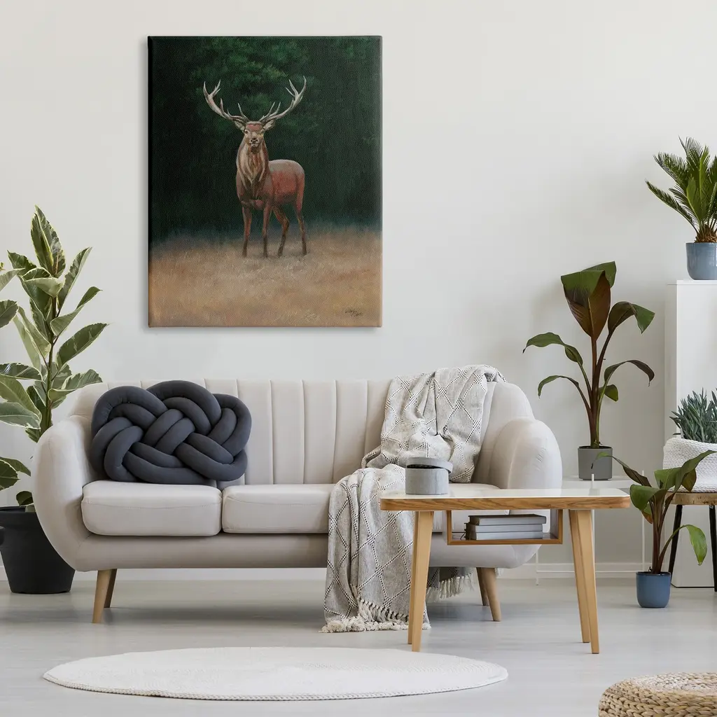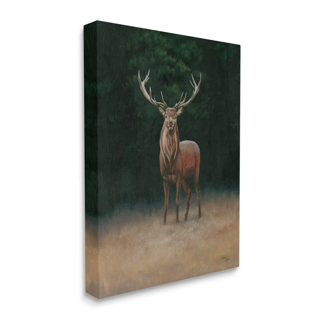 We create our stretched canvas to the highest standards. Using only the highest quality inks and canvas on Mimaki printers, we hand-cut and stretch each piece over a 1.5-inch thick wooden frame for hanging. As a result, the art comes ready to hang on the sturdy ledge with no installation required. Stupell Wall Art is made in the USA.Features: Dimensions: 16 x 1.5 x 20 InchesStretched Canvas Sizes Include Standard: 16 x 1.5 x 20 Large: 20 x 1.5 x 30 X-Large: 30 x 1.5 x 40 Oversized: 36 x 1.5 x 48Wall Art is Ready to Hang with Hardware Free Hanging. No installation required. For Easy Set Up Lean or Layer Artwork on Shelf or Against Wall.Our stretched canvas is created with the highest standards. We use only the highest quality inks and canvas on our in house Mimaki printers, and then hand cut and stretch each piece over a 1.5 inch thick wooden frame for hanging. Made In USA.Artwork Relates To: Animal, Deer, Mammal, Wildlife, Elk, AntlerDesign by Wellington Studio