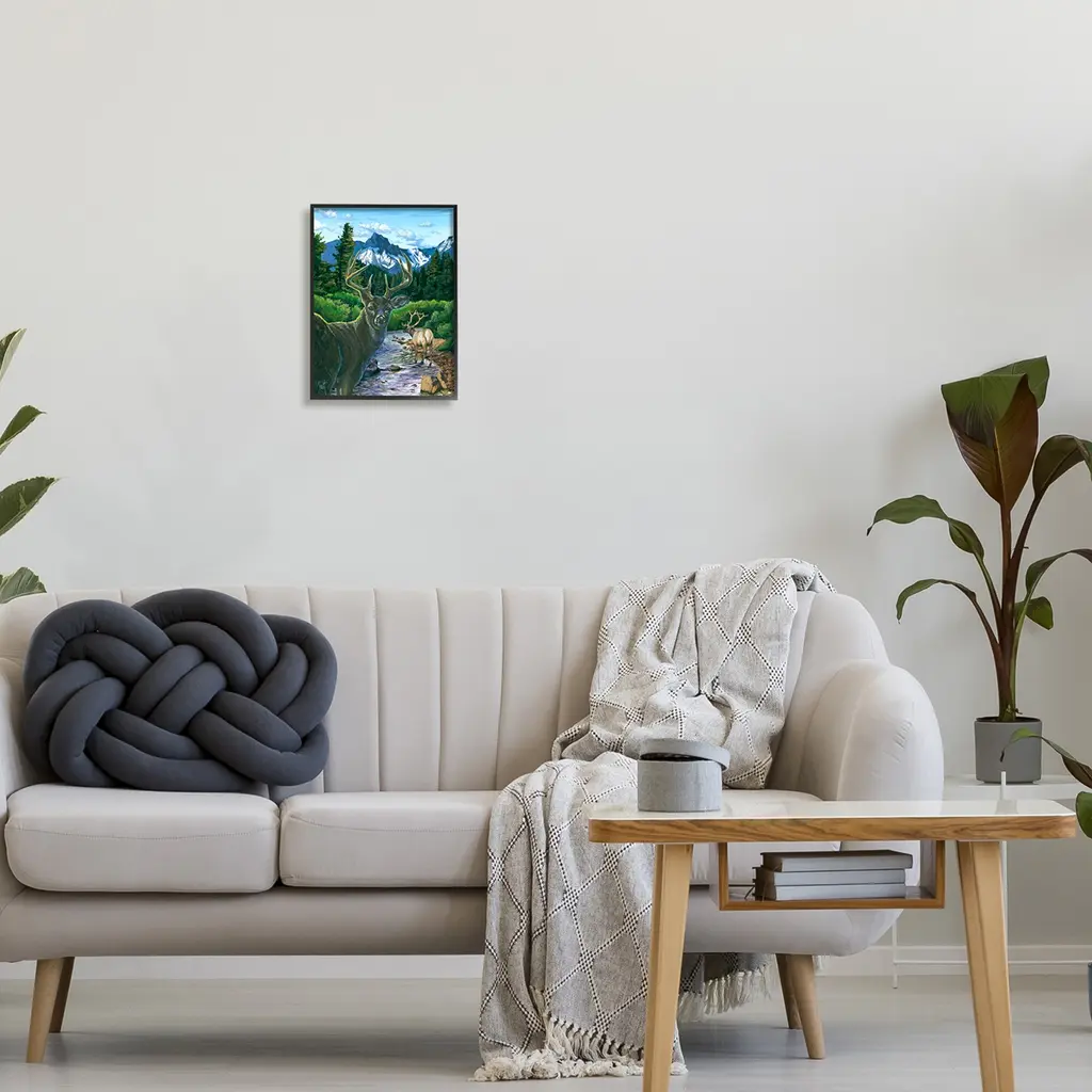 Add dimension to any room with our textured Framed Giclee Artwork. Our framed artwork is securely mounted into a 1.5-inch thick wood grain frame and ready to hang. Frames are available in three alluring styles: black, gray farmhouse and white. In addition, you should check out our oversized options if you want a statement piece. Stupell Wall Art is made in the USA.Features: Dimensions: 11 x 1.5 x 14 FramedFramed Giclee Sizes Include Standard: 11 x 1.5 x 14 Large: 16 x 1.5 x 20 Oversized: 24 x 1.5 x 30Wall Art is Ready to Hang with Hardware Free Hanging. No installation required. For Easy Set Up Lean or Layer Artwork on Shelf or Against Wall.Our giclée prints are carefully mounted on a durable MDF backing, and then perfectly finished in a 1.5 inch thick woodgrain frame. Mounted frame colors include black, gray farmhouse and white. Made In USA.Artwork Relates To: Animal, Deer, Mammal, Wildlife, Elk, Antler, Tree, Nature, Wilderness, Mountain, Mountain Range, Moose, Land, Woodland, RiverDesign by Scott Westmoreland