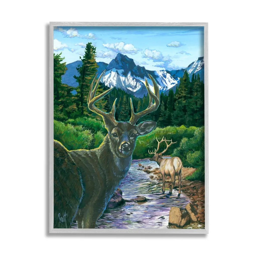 Add dimension to any room with our textured Framed Giclee Artwork. Our framed artwork is securely mounted into a 1.5-inch thick wood grain frame and ready to hang. Frames are available in three alluring styles: black, gray farmhouse and white. In addition, you should check out our oversized options if you want a statement piece. Stupell Wall Art is made in the USA.Features: Dimensions: 11 x 1.5 x 14 FramedFramed Giclee Sizes Include Standard: 11 x 1.5 x 14 Large: 16 x 1.5 x 20 Oversized: 24 x 1.5 x 30Wall Art is Ready to Hang with Hardware Free Hanging. No installation required. For Easy Set Up Lean or Layer Artwork on Shelf or Against Wall.Our giclée prints are carefully mounted on a durable MDF backing, and then perfectly finished in a 1.5 inch thick woodgrain frame. Mounted frame colors include black, gray farmhouse and white. Made In USA.Artwork Relates To: Animal, Deer, Mammal, Wildlife, Elk, Antler, Tree, Nature, Wilderness, Mountain, Mountain Range, Moose, Land, Woodland, RiverDesign by Scott Westmoreland