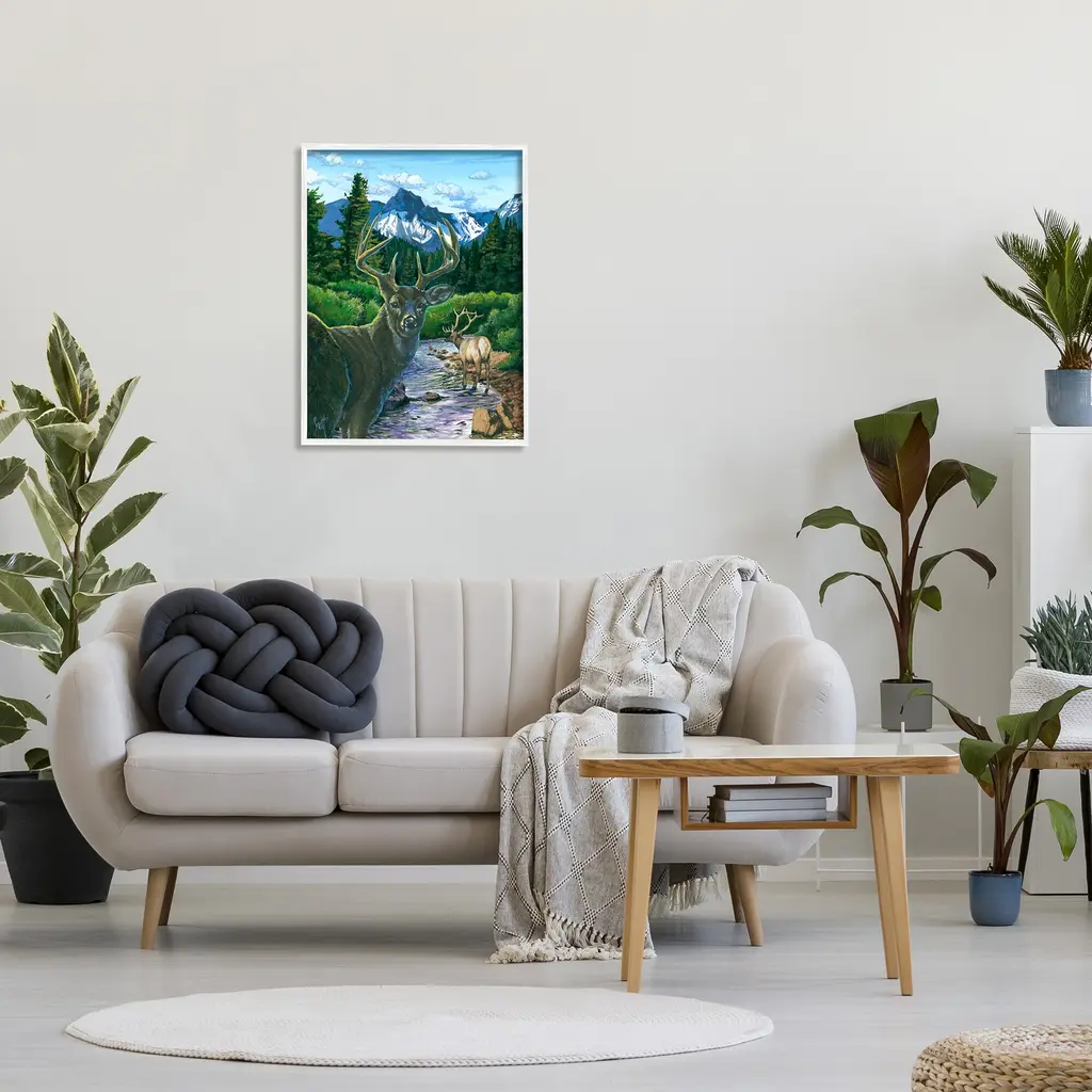 Add dimension to any room with our textured Framed Giclee Artwork. Our framed artwork is securely mounted into a 1.5-inch thick wood grain frame and ready to hang. Frames are available in three alluring styles: black, gray farmhouse and white. In addition, you should check out our oversized options if you want a statement piece. Stupell Wall Art is made in the USA.Features: Dimensions: 11 x 1.5 x 14 FramedFramed Giclee Sizes Include Standard: 11 x 1.5 x 14 Large: 16 x 1.5 x 20 Oversized: 24 x 1.5 x 30Wall Art is Ready to Hang with Hardware Free Hanging. No installation required. For Easy Set Up Lean or Layer Artwork on Shelf or Against Wall.Our giclée prints are carefully mounted on a durable MDF backing, and then perfectly finished in a 1.5 inch thick woodgrain frame. Mounted frame colors include black, gray farmhouse and white. Made In USA.Artwork Relates To: Animal, Deer, Mammal, Wildlife, Elk, Antler, Tree, Nature, Wilderness, Mountain, Mountain Range, Moose, Land, Woodland, RiverDesign by Scott Westmoreland