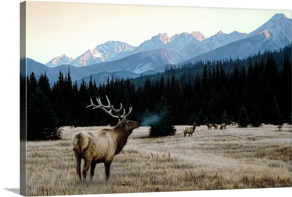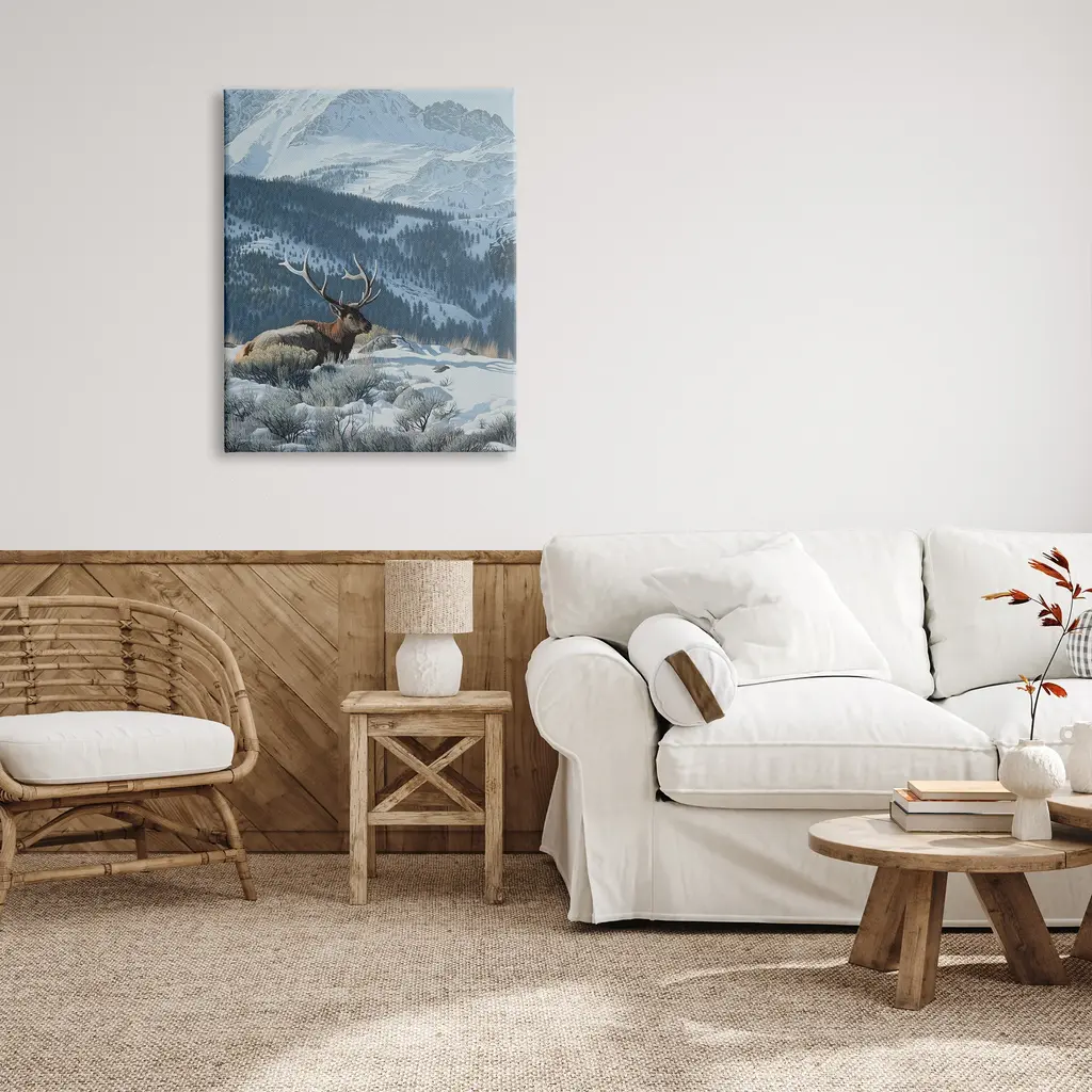 We create our stretched canvas to the highest standards. Using only the highest quality inks and canvas on Mimaki printers, we hand-cut and stretch each piece over a 1.5-inch thick wooden frame for hanging. As a result, the art comes ready to hang on the sturdy ledge with no installation required. Stupell Wall Art is made in the USA.Features: Dimensions: 16 x 1.5 x 20 InchesStretched Canvas Sizes Include Standard: 16 x 1.5 x 20 Large: 20 x 1.5 x 30 X-Large: 30 x 1.5 x 40 Oversized: 36 x 1.5 x 48Wall Art is Ready to Hang with Hardware Free Hanging. No installation required. For Easy Set Up Lean or Layer Artwork on Shelf or Against Wall.Our stretched canvas is created with the highest standards. We use only the highest quality inks and canvas on our in house Mimaki printers, and then hand cut and stretch each piece over a 1.5 inch thick wooden frame for hanging. Made In USA.Artwork Relates To: Animal, Mammal, Deer, Elk, Wildlife, Mountain, Landscape, Scenery, Snow, WinterDesign by Clinton Jammer