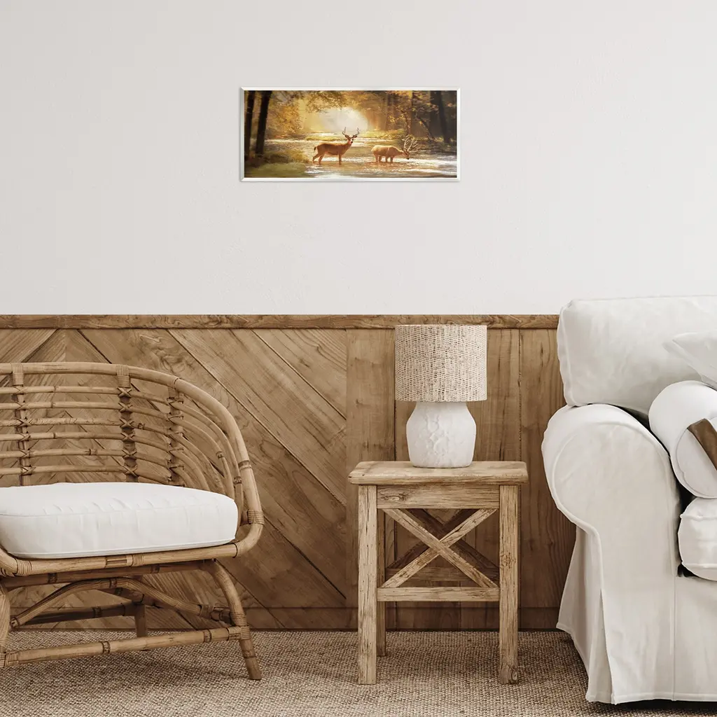Our wall plaques start as high-quality lithograph prints mounted on durable 0.5-inch thick MDF wood. Each piece is hand finished and comes with a fresh layer of white foil on the sides to give it a crisp, clean look. Plaques arrive ready to hang without installation and come with removable plastic corners to keep them from damage in transit. Stupell Wall Art is made in the USA.Features: Dimensions: 17 x 0.5 x 7 InchesWall Art is Ready to Hang with Hardware Free Hanging. No installation required. For Easy Set Up Lean or Layer Artwork on Shelf or Against Wall.All of our wall plaques start off as high quality lithograph prints that are then mounted on durable 0.5 inch thick MDF wood. Each piece is hand finished and comes with a fresh layer of foil on the sides to give it a crisp clean look. Made In USA.Artwork Relates To: Animal, Deer, Mammal, Wildlife, Sunlight, Nature, Landscape, Woodland, SceneryDesign by Amber Sterling