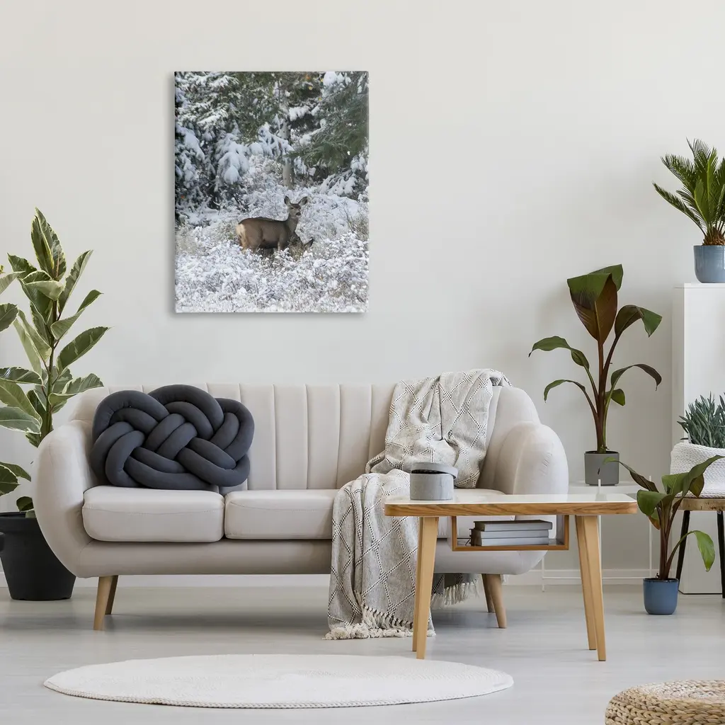 We create our stretched canvas to the highest standards. Using only the highest quality inks and canvas on Mimaki printers, we hand-cut and stretch each piece over a 1.5-inch thick wooden frame for hanging. As a result, the art comes ready to hang on the sturdy ledge with no installation required. Stupell Wall Art is made in the USA.Features: Dimensions: 16 x 1.5 x 20 InchesStretched Canvas Sizes Include Standard: 16 x 1.5 x 20 Large: 20 x 1.5 x 30 X-Large: 30 x 1.5 x 40 Oversized: 36 x 1.5 x 48Wall Art is Ready to Hang with Hardware Free Hanging. No installation required. For Easy Set Up Lean or Layer Artwork on Shelf or Against Wall.Our stretched canvas is created with the highest standards. We use only the highest quality inks and canvas on our in house Mimaki printers, and then hand cut and stretch each piece over a 1.5 inch thick wooden frame for hanging. Made In USA.Artwork Relates To: Animal, Deer, Mammal, Wildlife, Tree, Vegetation, Nature, Woodland, SnowDesign by Kathy Mansfield