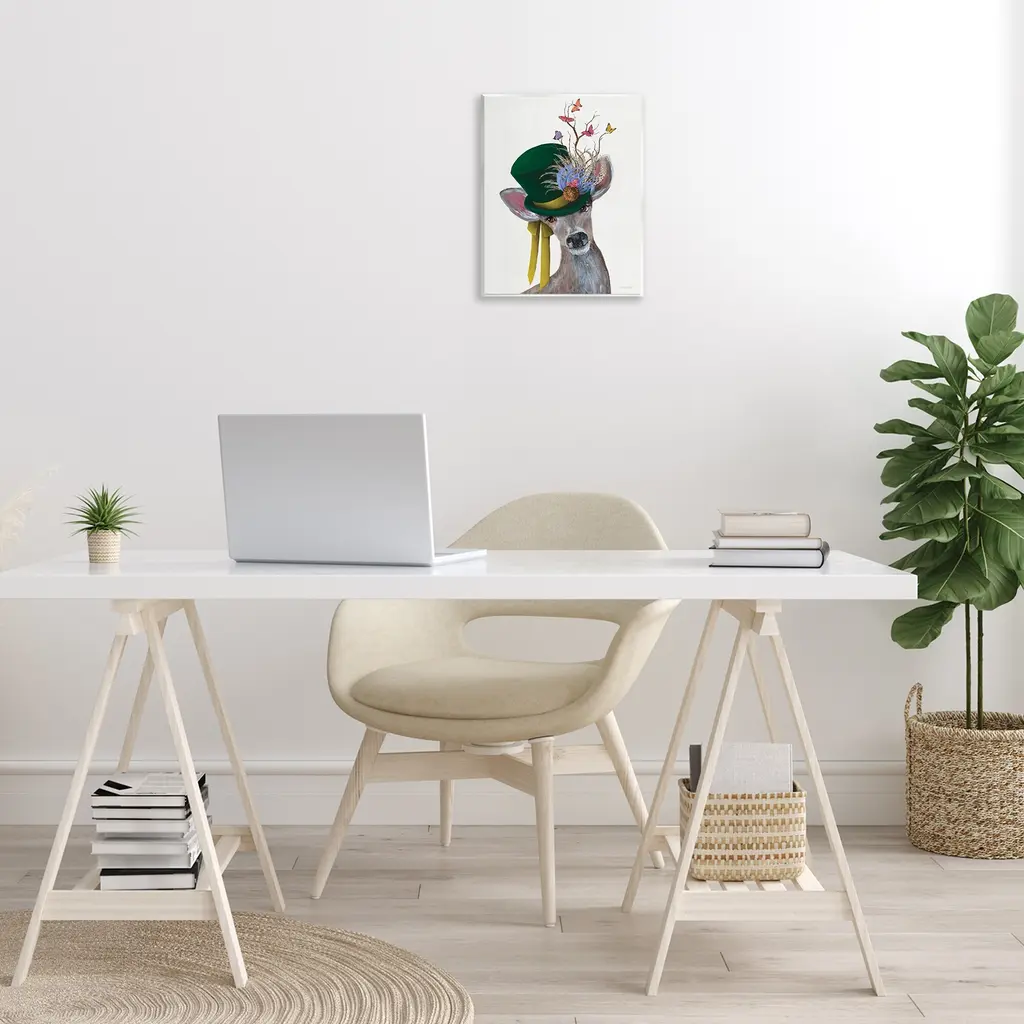 Our wall plaques start as high-quality lithograph prints mounted on durable 0.5-inch thick MDF wood. Each piece is hand finished and comes with a fresh layer of white foil on the sides to give it a crisp, clean look. Plaques arrive ready to hang without installation and come with removable plastic corners to keep them from damage in transit. Stupell Wall Art is made in the USA.Features: Dimensions: 11 x 0.5 x 14 InchesWall Art is Ready to Hang with Hardware Free Hanging. No installation required. For Easy Set Up Lean or Layer Artwork on Shelf or Against Wall.All of our wall plaques start off as high quality lithograph prints that are then mounted on durable 0.5 inch thick MDF wood. Each piece is hand finished and comes with a fresh layer of foil on the sides to give it a crisp clean look. Made In USA.Artwork Relates To: Hat, Animal, Deer, Mammal, Wildlife, Flower, Plant, Floral, Pattern, Painting, Butterfly, InsectDesign by Kamdon Kreations