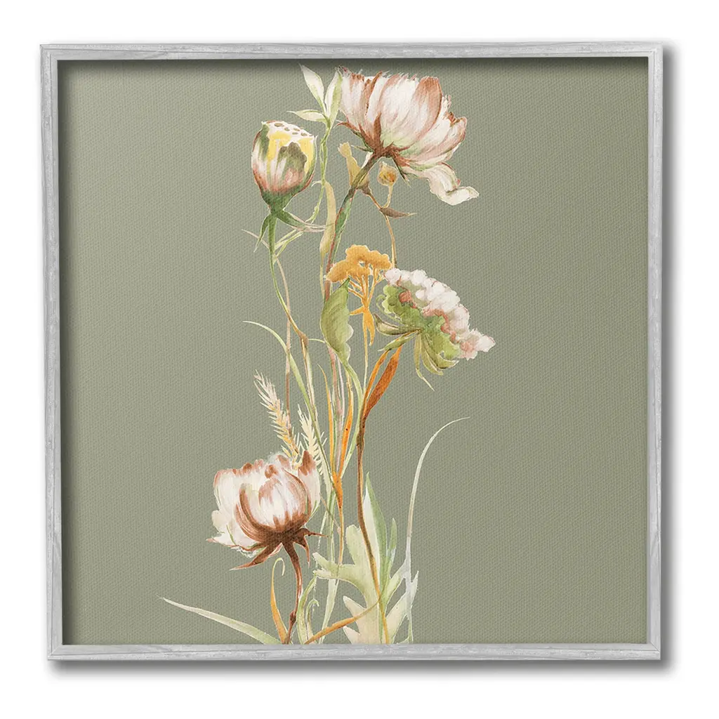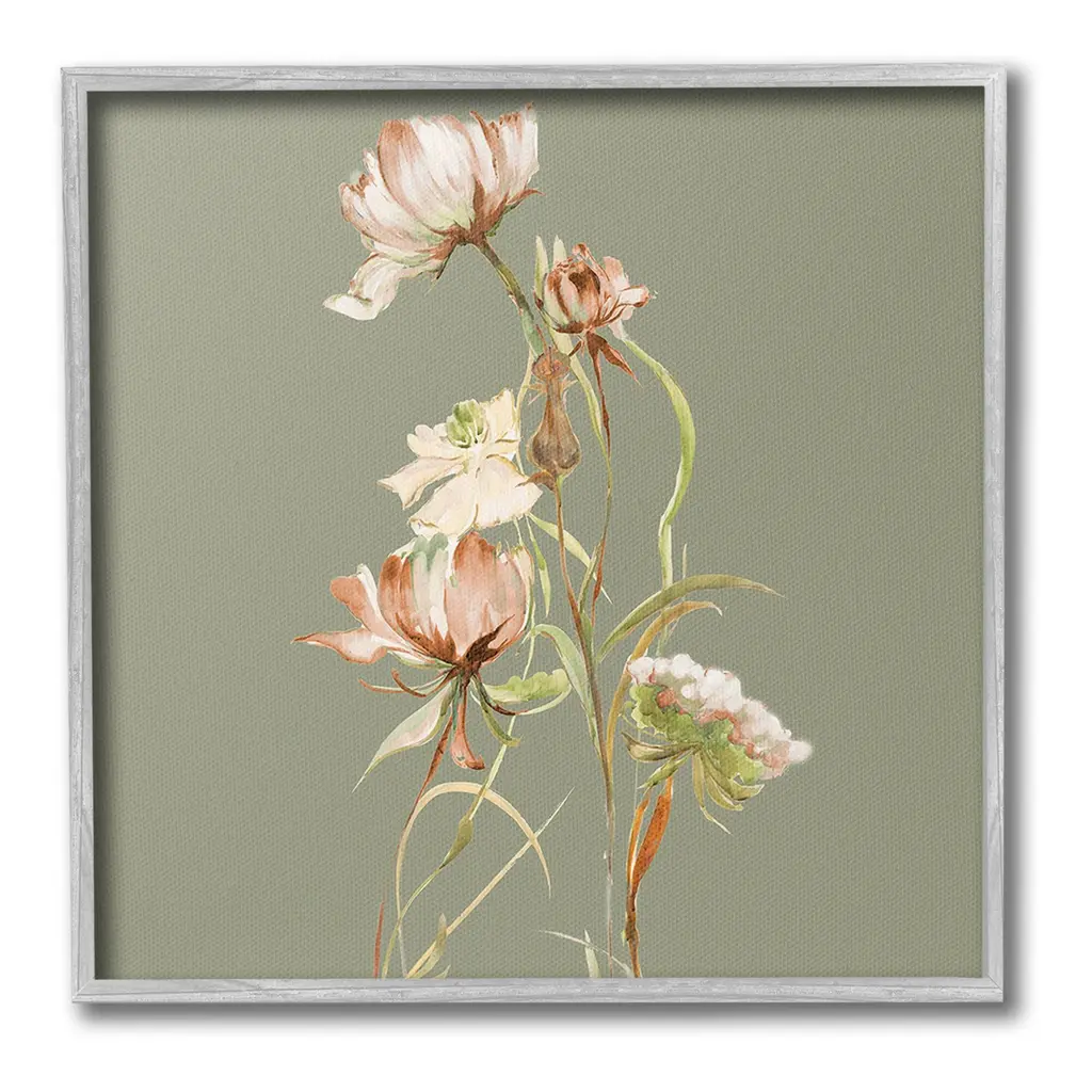 Stupell Delicate Blooms On Green Framed Giclee Art Design By Liz Jardine - 17 X 17 - Grey