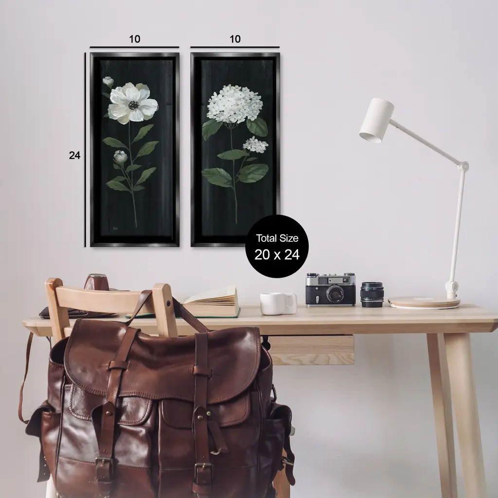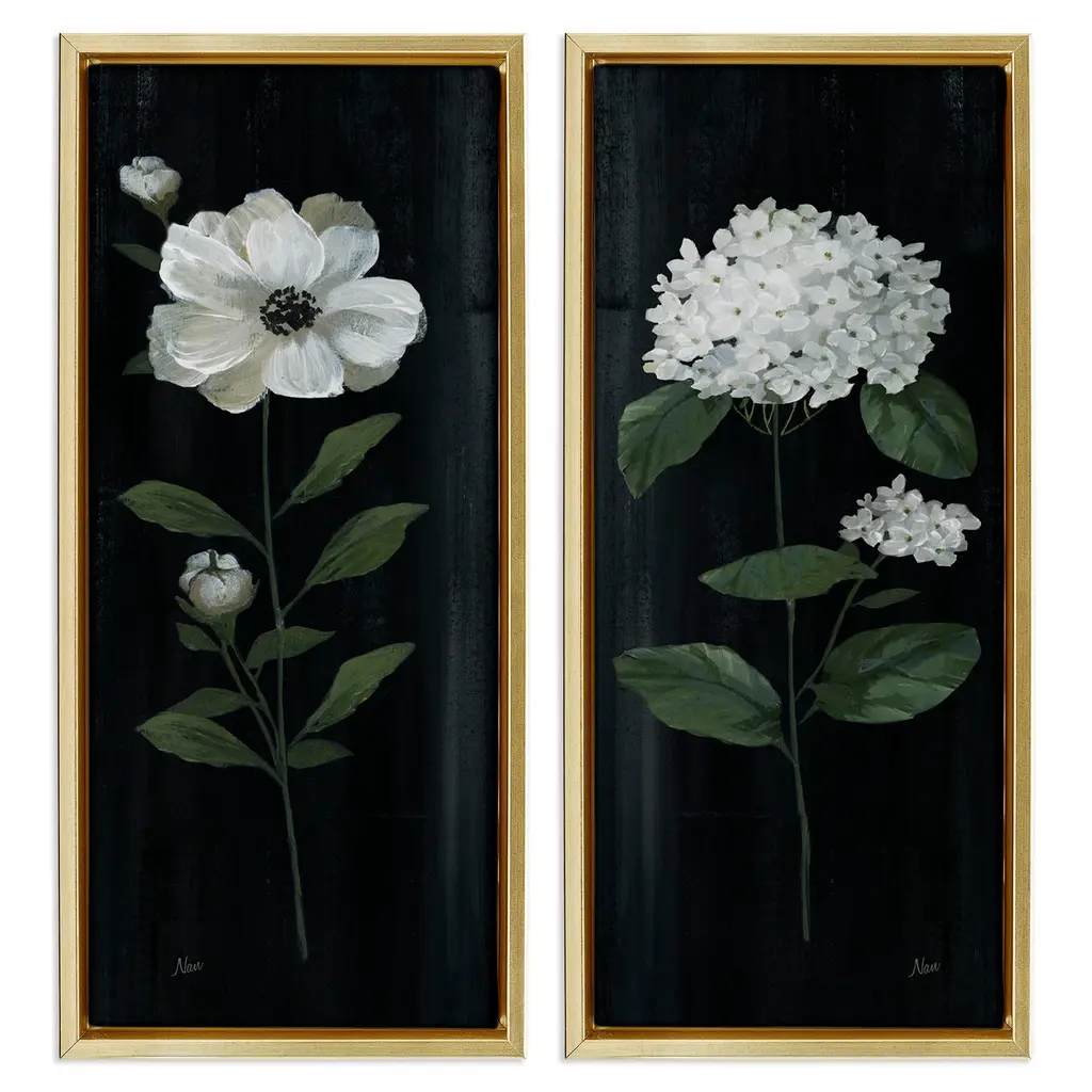 Elevate your home or office to the next level with Stupell Framed Floating Canvas Wall Art. Our premium hand-stretched canvas is mounted securely into a sturdy lightweight frame. The museum-style gap between the wrapped canvas and the box frame gives the illusion of floating artwork. Stupell Wall Art is made in the USA.Features: Dimensions: 2 Piece Set, Each Frame is 11 x 1.7 x 25Two Piece Floating Frame Canvas Products are available as 11"x25" or 14"x31" Panels. All Floating Frame Canvas Products have a 1.7" Depth.Wall Art is Ready to Hang with Hardware Free Hanging. No Installation required. For Easy Set Up Lean or Layer Artwork on Shelf or Against Wall. Artwork is Permently Fixed into the Frame.Our elevated 1.7" Thick Floating Frame is the perfect complement to our canvas style Wall Art. We use only the highest quality inks in house with industry leading printing solutions. Canvas is hand stretched over a durable wood foundation and then mounted securly into a Modern Box Frame. Made in the USA.Artwork Relates To: Plant, Flower, Blossom, Petal, Floral, VintageDesign by Nan