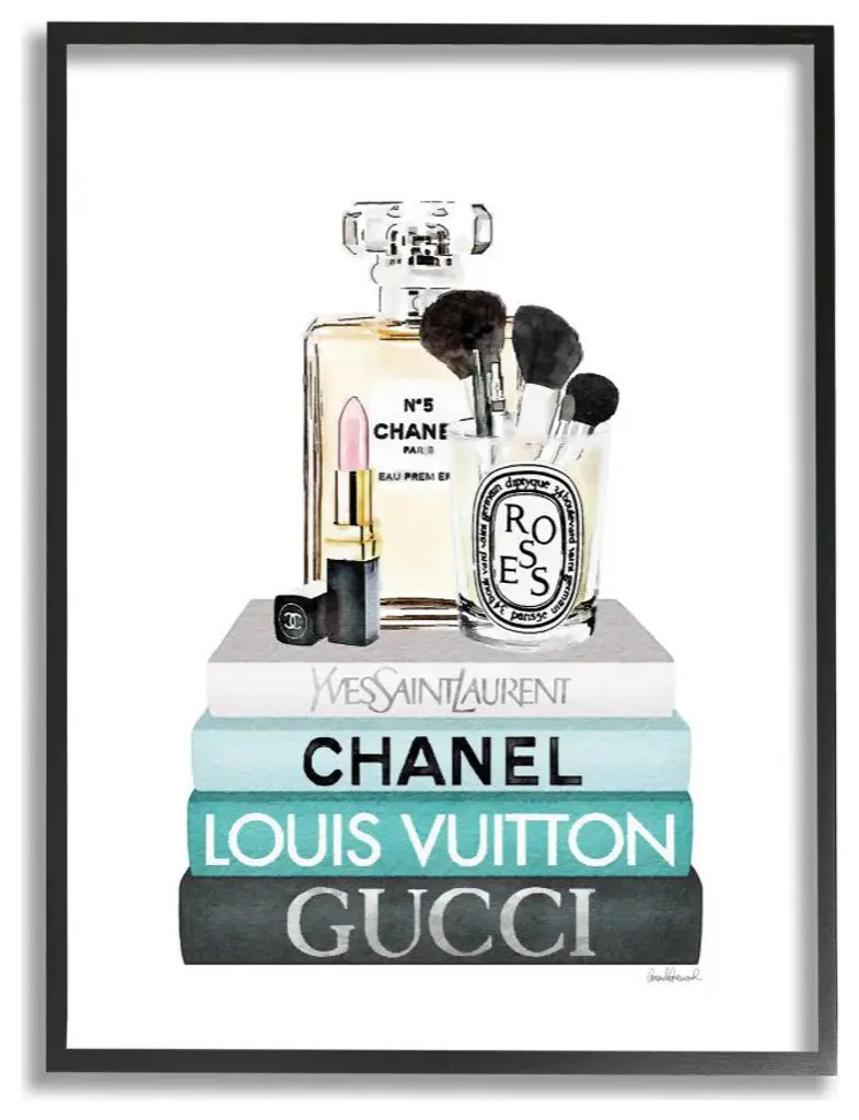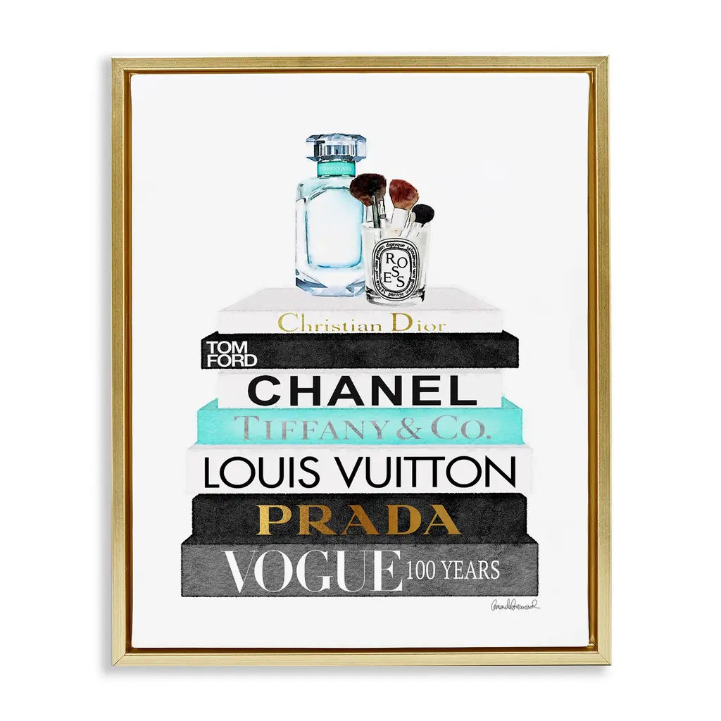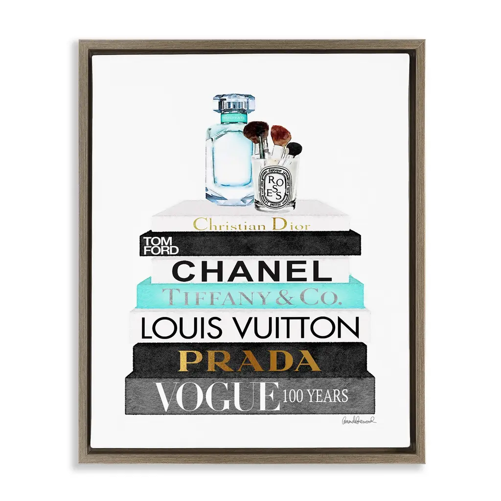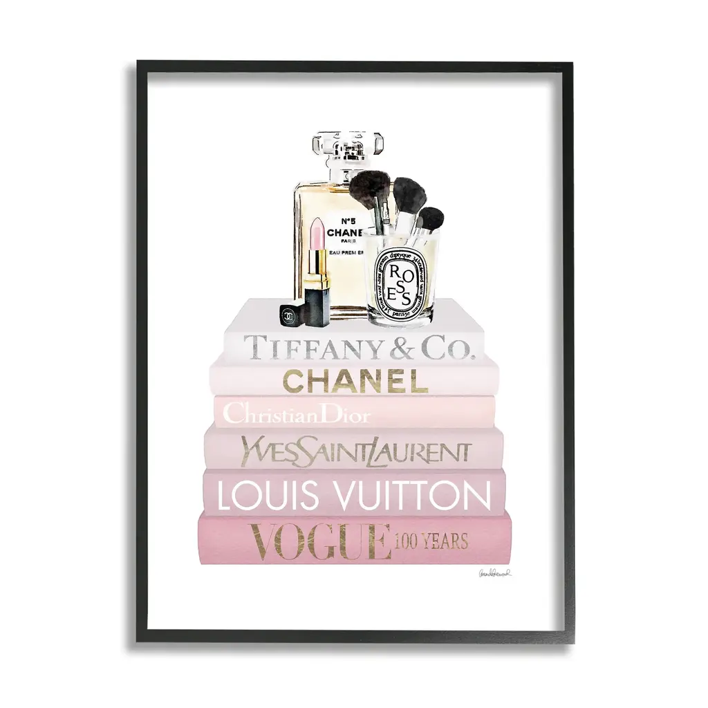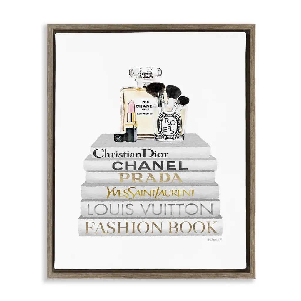 Stupell Deluxe Fragrance And Cosmetics Glam Pink Bookstack Framed Wall Art - 16 X 20 - Grey