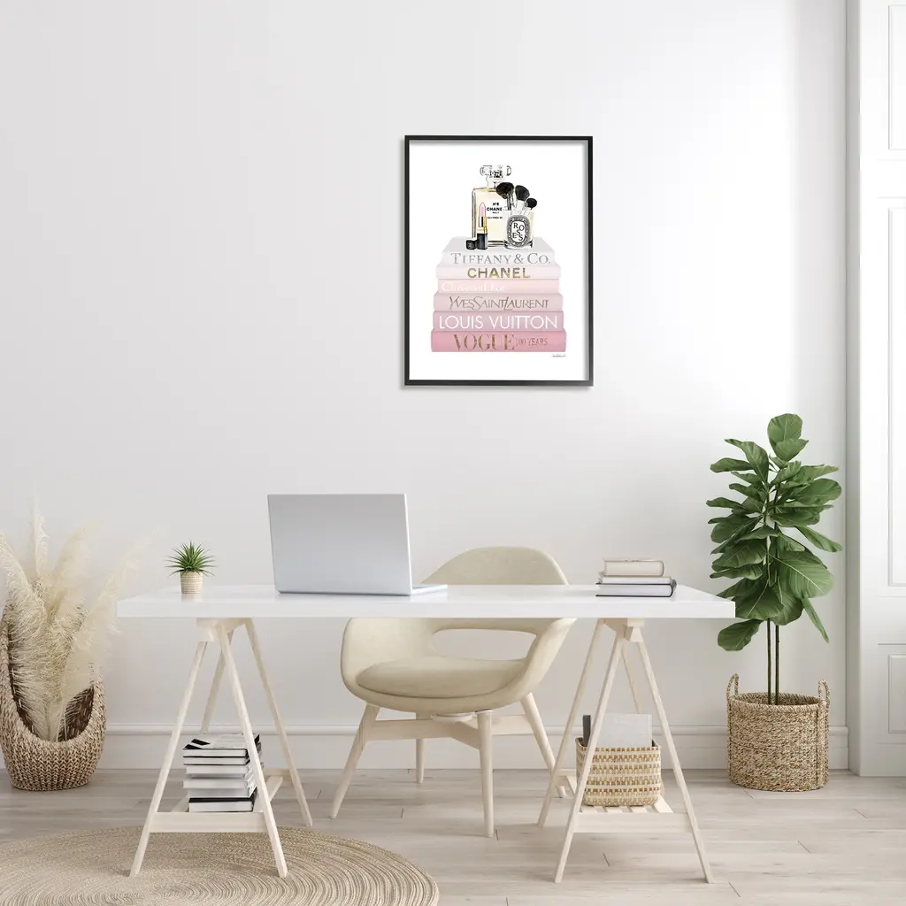 Stupell Deluxe Fragrance And Cosmetics Glam Pink Bookstack Framed Wall Art - 24 X 30 - Black
