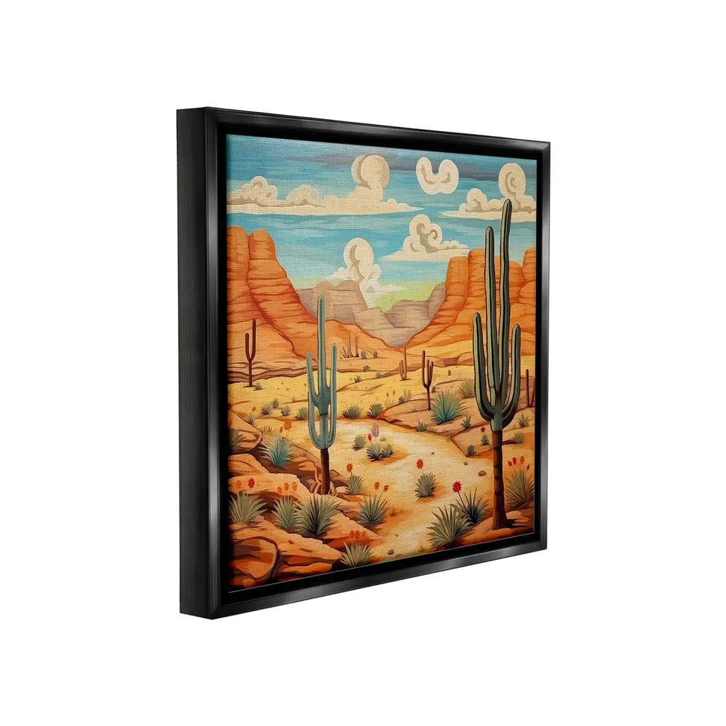 Elevate your home or office to the next level with Stupell Framed Floating Canvas Wall Art. Our premium hand-stretched canvas is mounted securely into a sturdy lightweight frame. The museum-style gap between the wrapped canvas and the box frame gives the illusion of floating artwork. Stupell Wall Art is made in the USA.Features: Dimensions: 18 x 1.7 x 18 Frame, 17 x 1.5 x 17 Canvas ArtFloating Frame Canvas Products are available in sizes 18"x18" and 25"x25". All Floating Frame Canvas Products have a 1.7" Depth.Wall Art is Ready to Hang with Hardware Free Hanging. No Installation required. For Easy Set Up Lean or Layer Artwork on Shelf or Against Wall. Artwork is Permently Fixed into the Frame.Our elevated 1.7" Thick Floating Frame is the perfect complement to our canvas style Wall Art. We use only the highest quality inks in house with industry leading printing solutions. Canvas is hand stretched over a durable wood foundation and then mounted securly into a Modern Box Frame. Made in the USA.Artwork Relates To: Desert, Nature, Cactus, Canyon, Mesa, Path, Cloud, Modern, SouthwesternDesign by Lazar Studio