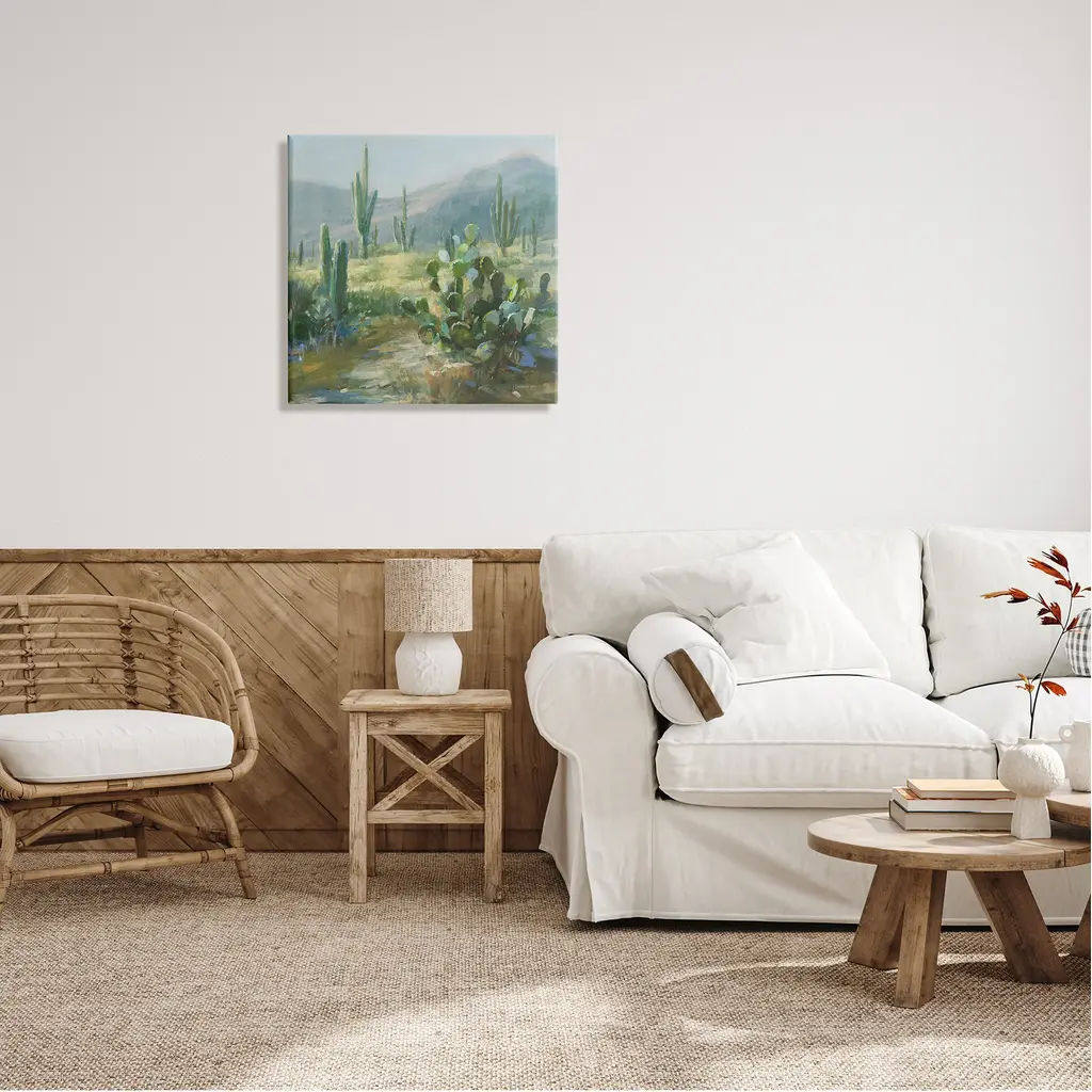 We create our stretched canvas to the highest standards. Using only the highest quality inks and canvas on Mimaki printers, we hand-cut and stretch each piece over a 1.5-inch thick wooden frame for hanging. As a result, the art comes ready to hang on the sturdy ledge with no installation required. Stupell Wall Art is made in the USA.Features: Dimensions: 17 x 1.5 x 17 InchesStretched Canvas Sizes Include Standard: 17 x 1.5 x 17 Large: 24 x 1.5 x 24 X-Large: 30 x 1.5 x 30 Oversized: 36 x 1.5 x 36Wall Art is Ready to Hang with Hardware Free Hanging. No installation required. For Easy Set Up Lean or Layer Artwork on Shelf or Against Wall.Our stretched canvas is created with the highest standards. We use only the highest quality inks and canvas on our in house Mimaki printers, and then hand cut and stretch each piece over a 1.5 inch thick wooden frame for hanging. Made In USA.Artwork Relates To: Painting, Plant, Cactus, Vegetation, Landscape, Desert, MountainDesign by Danhui Nai