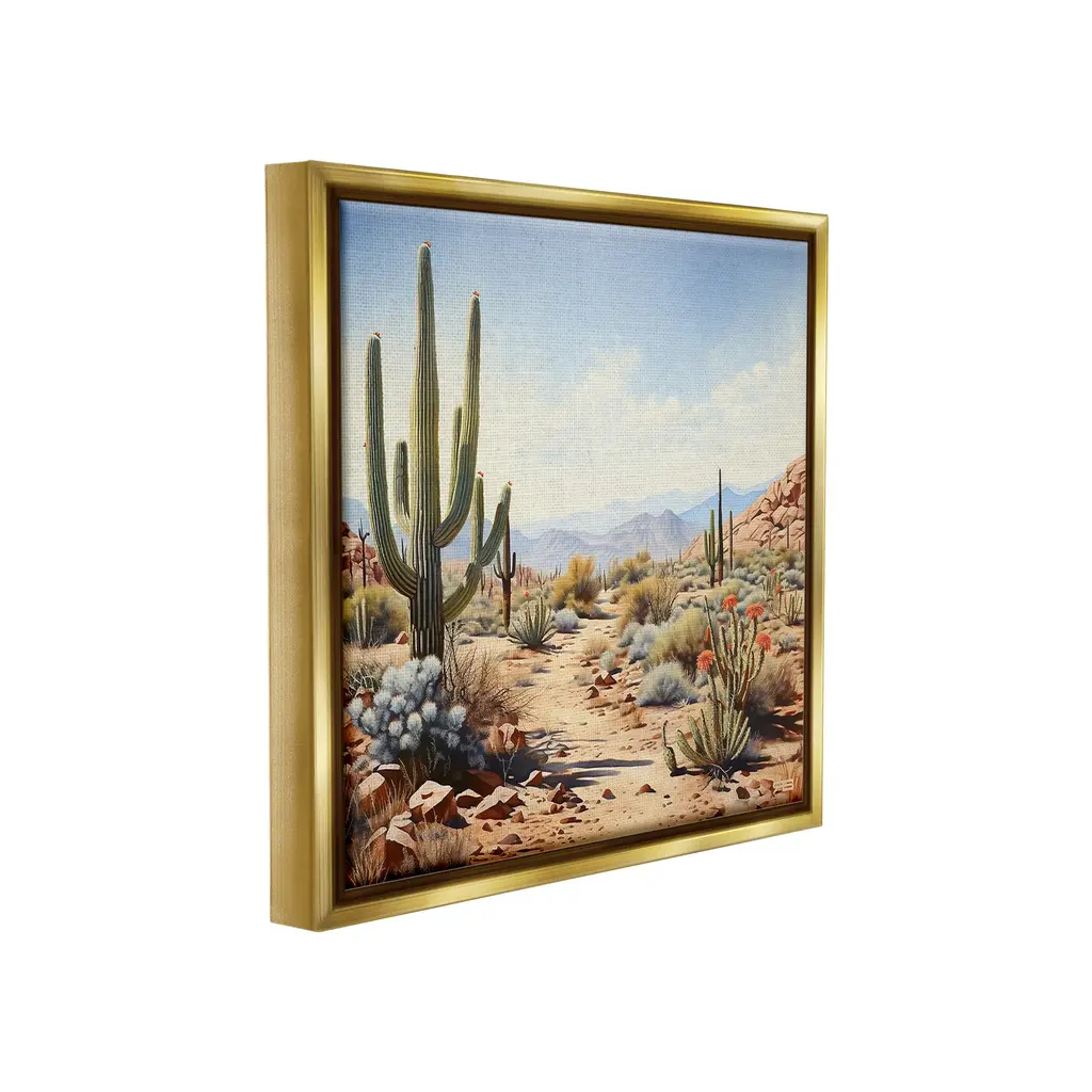 Stupell Desert Cactus Path Framed Floater Canvas Wall Art Design By Rb - 25 X 25 - Gold