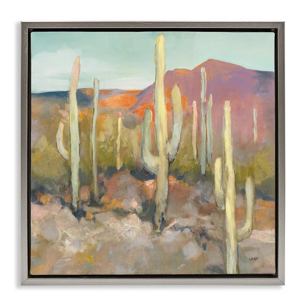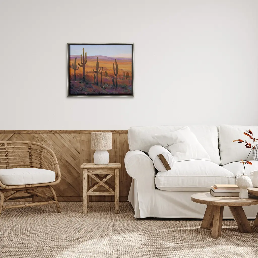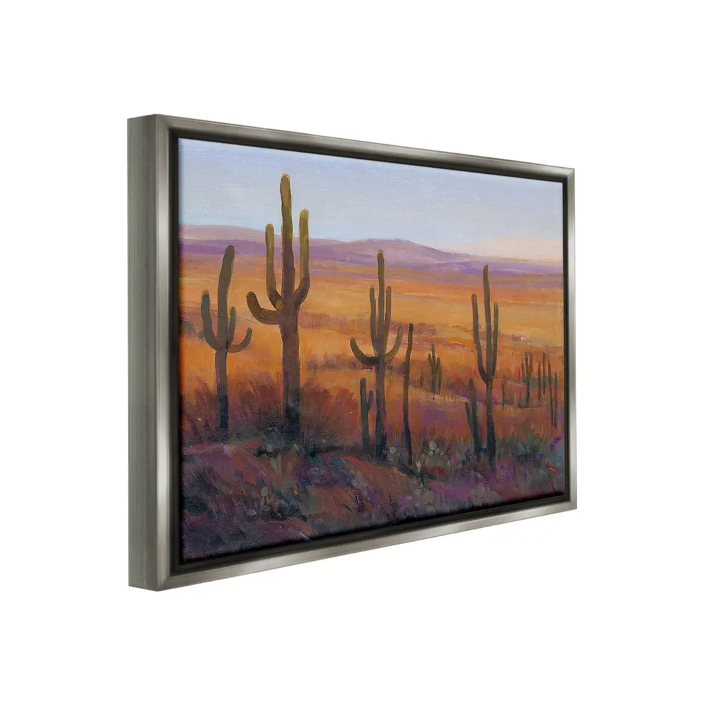Elevate your home or office to the next level with Stupell Framed Floating Canvas Wall Art. Our premium hand-stretched canvas is mounted securely into a sturdy lightweight frame. The museum-style gap between the wrapped canvas and the box frame gives the illusion of floating artwork. Stupell Wall Art is made in the USA.Features: Dimensions: 21 x 1.7 x 17 Frame, 20 x 1.5 x 16 Canvas ArtFloating Frame Canvas Products are available in sizes 21"x17" and 31"x25". All Floating Frame Canvas Products have a 1.7" Depth.Wall Art is Ready to Hang with Hardware Free Hanging. No Installation required. For Easy Set Up Lean or Layer Artwork on Shelf or Against Wall. Artwork is Permently Fixed into the Frame.Our elevated 1.7" Thick Floating Frame is the perfect complement to our canvas style Wall Art. We use only the highest quality inks in house with industry leading printing solutions. Canvas is hand stretched over a durable wood foundation and then mounted securly into a Modern Box Frame. Made in the USA.Artwork Relates To: Nature, Scenery, Landscape, Cactus, Plant, Field, Grassland, Desert, Painting, Wilderness, Canyon, Arid VegetationDesign by Tim Otoole