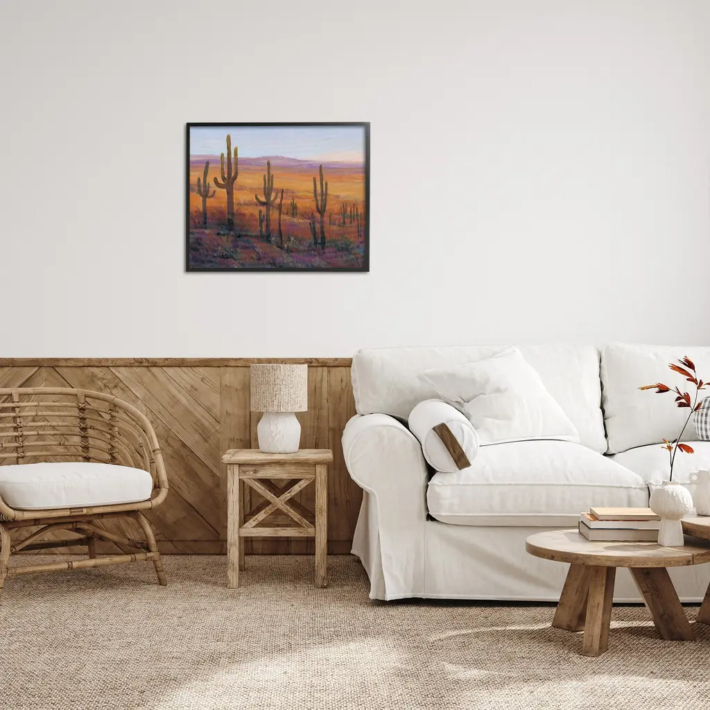 Add dimension to any room with our textured Framed Giclee Artwork. Our framed artwork is securely mounted into a 1.5-inch thick wood grain frame and ready to hang. Frames are available in three alluring styles: black, gray farmhouse and white. In addition, you should check out our oversized options if you want a statement piece. Stupell Wall Art is made in the USA.Features: Dimensions: 14 x 1.5 x 11 FramedFramed Giclee Products are available in the sizes 14"x11", 20"x16" or 30"x24". All Framed Giclee Products have a 1.5" Depth. Wall Art is Ready to Hang with Hardware Free Hanging. No installation required. For Easy Set Up Lean or Layer Artwork on Shelf or Against Wall.Our giclée prints are carefully mounted on a durable MDF backing, and then perfectly finished in a 1.5 inch thick woodgrain frame. Mounted frame colors include black, gray farmhouse and white. Made In USA.Artwork Relates To: Nature, Scenery, Landscape, Cactus, Plant, Field, Grassland, Desert, Painting, Wilderness, Canyon, Arid VegetationDesign by Tim Otoole